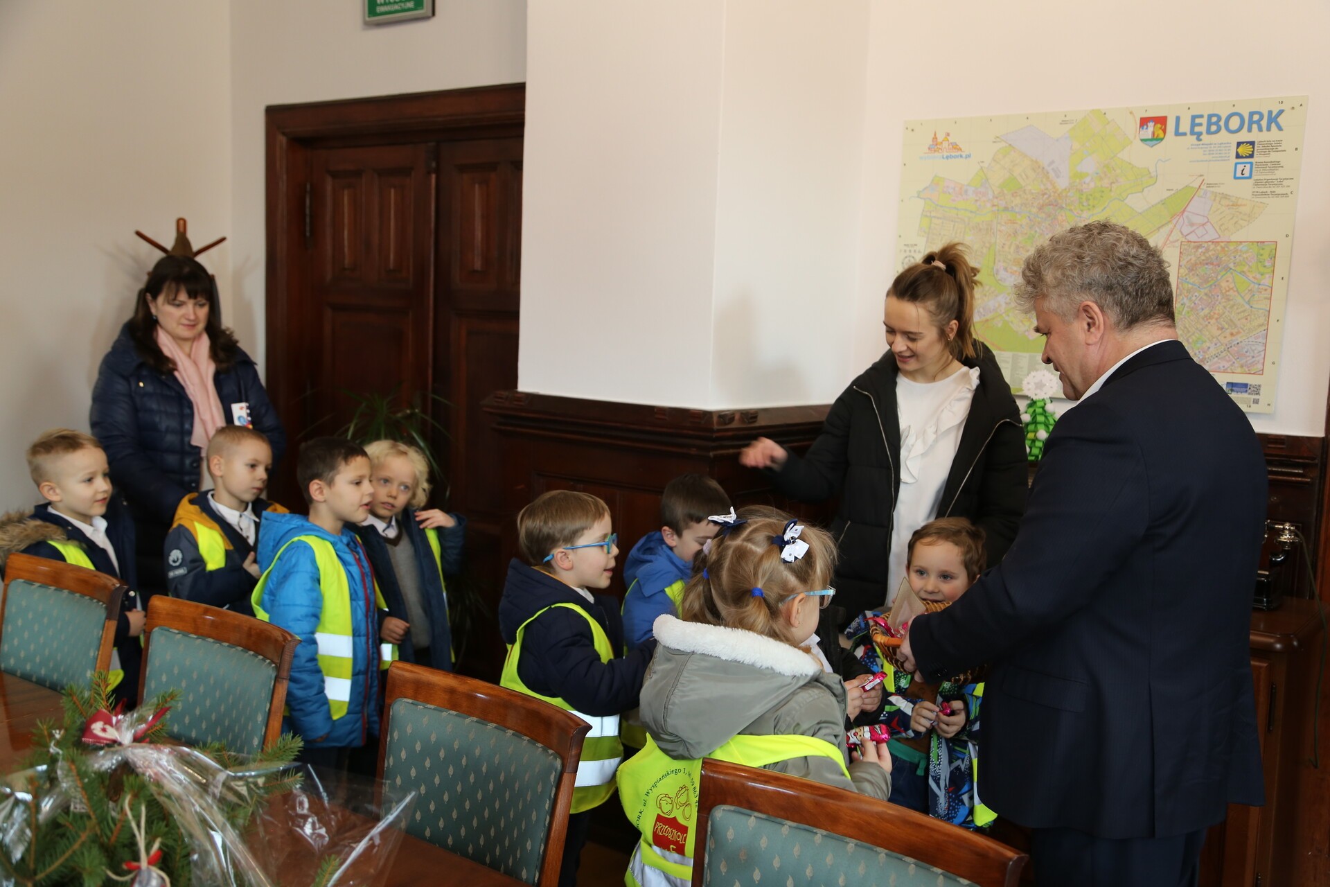 Ratusz z serdecznymi życzeniami odwiedziły przedszkolaki z Przedszkola nr 5 w Lęborku. Mili goście przynieśli własnoręcznie przygotowane życzenia i zaśpiewali świąteczną piosenkę.