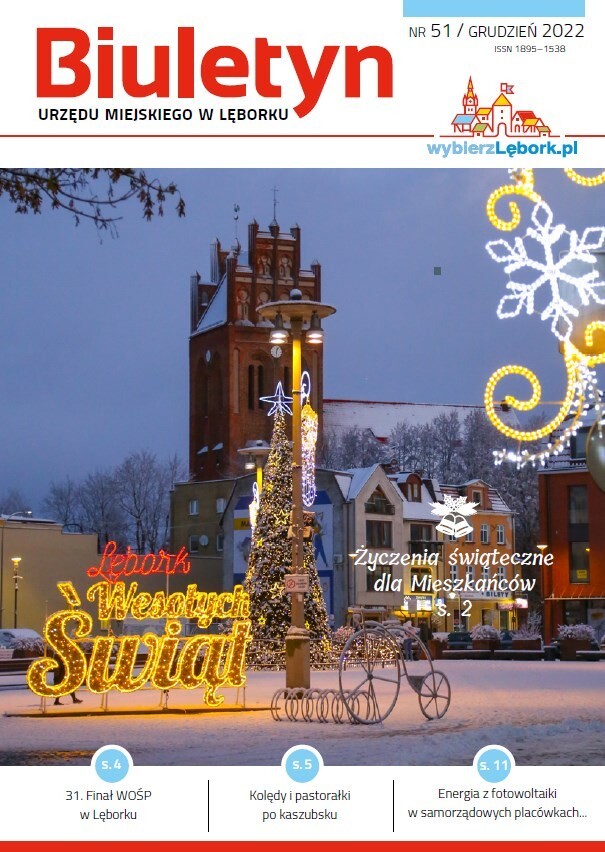 W tym wydaniu Biuletynu zachęcamy do skorzystania z bogatej oferty cyklicznych wydarzeń w bibliotece miejskiej, zapraszamy na wystawy do Muzeum i do Wieży Ciśnień. Przypominamy też, że zbliża się 31. Finał WOŚP, pokazujemy działalność lęborskich streetworkerów i aktywność seniorów w klubie Baza, a także ostatnio realizowane, ważne dla mieszkańców inwestycje.