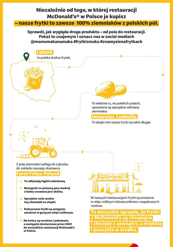 To właśnie z naszego miasta, z zakładu produkcyjnego Farm Frites Poland, frytki trafiają do wszystkich restauracji McDonald’s® w Polsce i w 10 krajach europejskich. Niezależnie od tego, w której restauracji McDonald’s je kupisz – frytki z Maka to zawsze 100% ziemniaków z polskich pól!