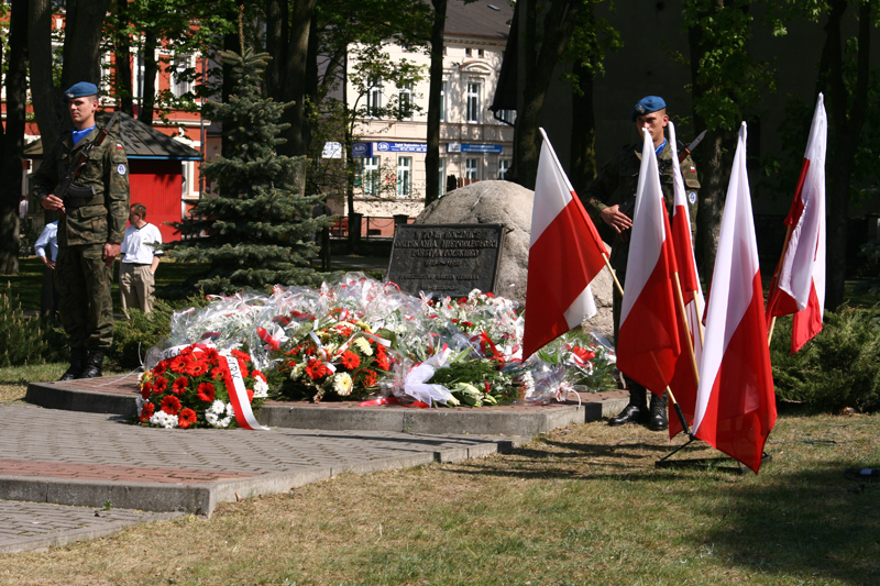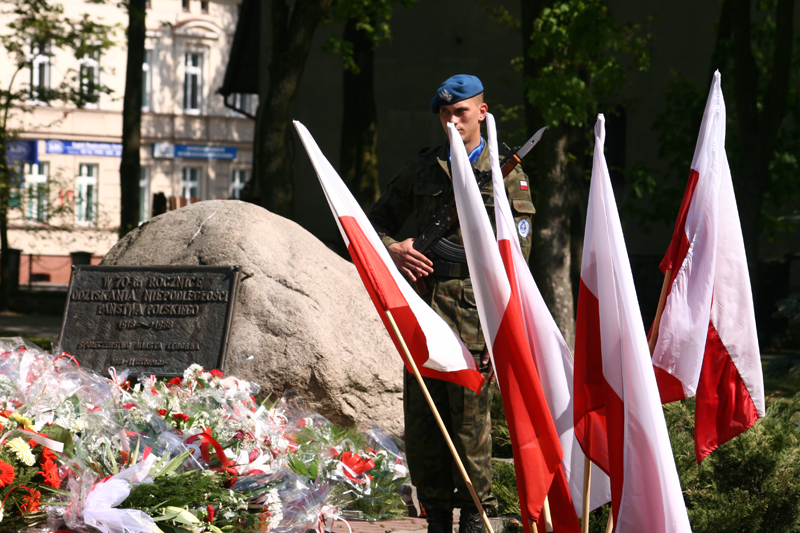 Oficjalne uroczystości 218 rocznicy uchwalenia Konstytucji 3 Maja pod Obeliskiem Niepodległości zgromadziły sporo mieszkańców miasta. - Rocznica ta przypada w czasie szczególnym: w tym roku obchodzimy bowiem 20 rocznicę zapoczątkowania zmian ustrojowych w naszym kraju oraz 5 rocznicę przystąpienia Polski do Unii Europejskiej - powiedział Burmistrz Włodzimierz Klata.