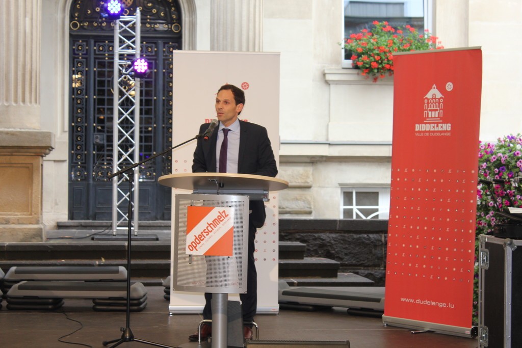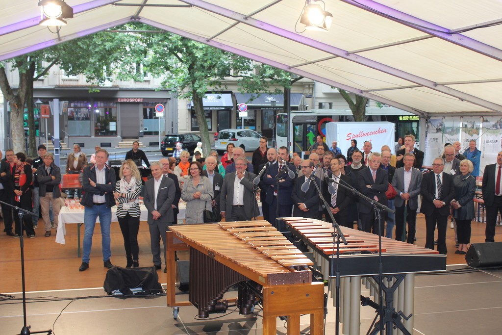 Oficjalne rozpoczęcie obchodów zostało zorganizowane na scenie rozstawionej na głównym placu Dudelange, przed Urzędem Miasta. Na zaproszenie Burmistrza Dudelande Dana Biancalana przyjechało wielu znamienitych gości, między innymi Dan Kersch, Minister Spraw Wewnętrznych Luksemburga oraz ambasadorowie państw, w których znajdują się miasta partnerskie. Obecny był również pan Piotr Wojtczak, Ambasador Polski w Luksemburgu. Po zakończeniu oficjalnej części rozpoczęły się koncerty zespołów z miast partnerskich. Lębork reprezentował kaszubski zespół regionalny „Frantówka”, w składzie Regina Szczupaczyńska, Andrzej Wenta, Krystyna Cychosz, Mirosława Kalinowska, Adrian Kielas, Zofia Krause, Marcin Jesiołowski i Paulina Rosin.