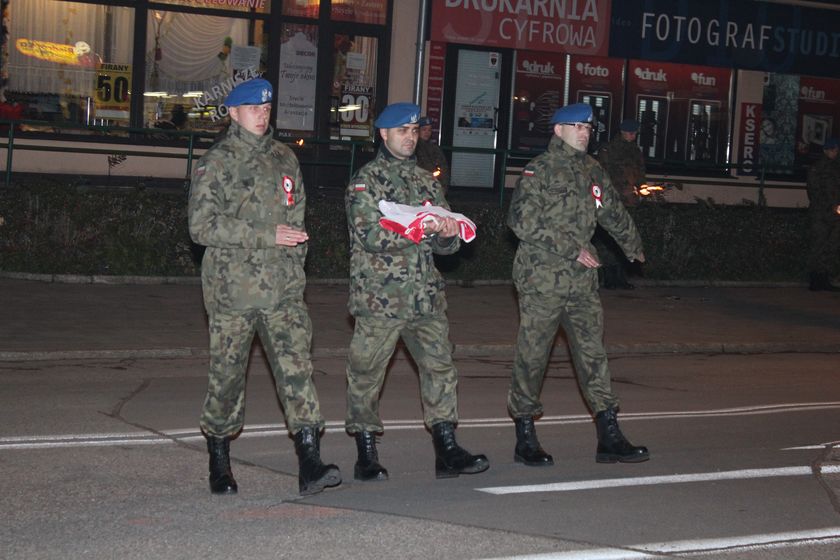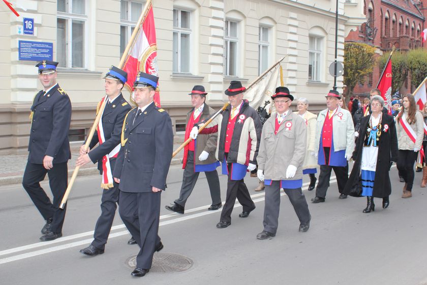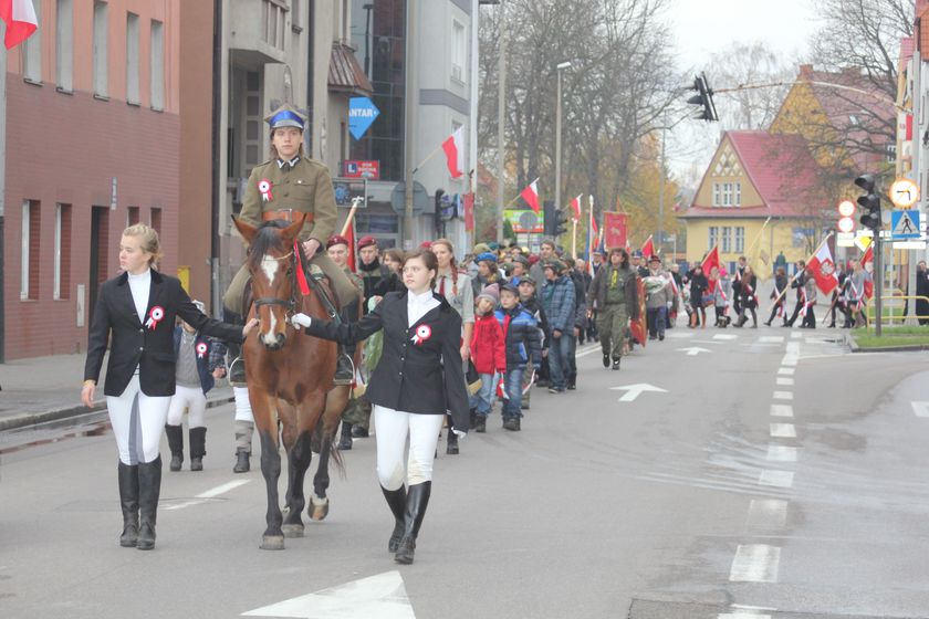 Niedzielne świętowanie 11 listopada rozpoczęła tradycyjnie uroczysta Msza Święta w Sanktuarium św. Jakuba Ap. w Lęborku celebrowana przez proboszcza o. Romana Ziołę. Przemarsz z Sanktuarium pod Obelisk Niepodległości prowadził w tym roku przez średniowieczne obwarowania. Przemarsz otwierała Orkiestra Dęta „Ziemia Lęborska" . Niewątpliwą atrakcją tegorocznego przemarszu byli jeźdźcy w strojach ułanów ze stajni Pałacu w Runowie. W konny przejazd zaangażowana była sekcja jeździecka przy Gimnazjum nr 1 w Lęborku. Efektownie prezentował się także oddział rzymskich legionistów i lęborskich łuczników. Nie zawiedli, jak zwykle harcerze, kombatanci, przedstawiciele władz samorządowych, miejskich spółek, firm, instytucji, służb, organizacji pozarządowych i szkół. Przemarsz zamykały motocykle klubów motocyklowych Knight Riders i Motolegion.