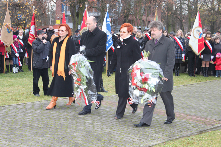 Uroczystość pod Obeliskiem Niepodległości otworzyły hymn Gaude Mater Polonia i Hymn Państwowy odegrane przez Orkiestrę Dęta „Ziemia Lęborska”. Po montażu słowno-muzyczny w wykonaniu młodzieży z Zespołu Szkół Ogólnokształcących nr 1 przygotowanym przez Katarzynę Wach przemówienie okolicznościowe wygłosił Burmistrz Miasta Włodzimierz Klata.