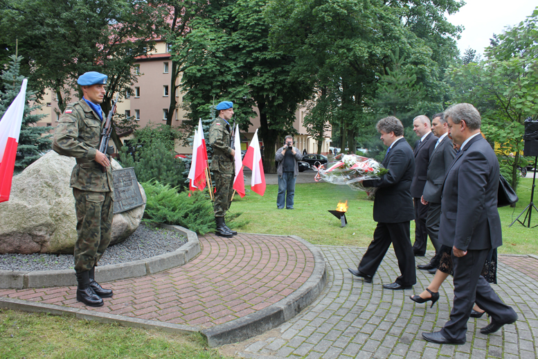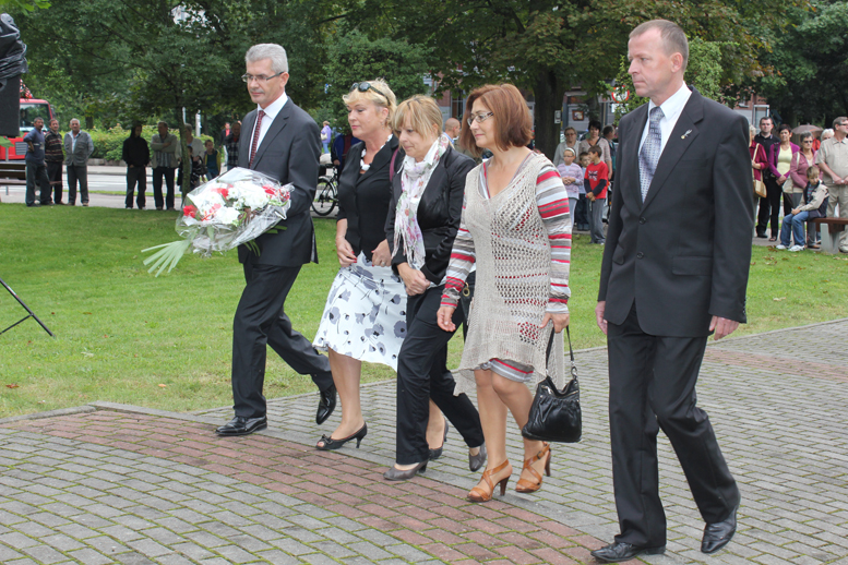 W imieniu mieszkańców miasta i powiatu wiązanki złożyły władze samorządowe miasta i powiatu, na czele z Burmistrzem Miasta Witoldem Namyślakiem, Starostą Lęborskim Wiktorem Tyburskim oraz Senatorem Kazimierzem Kleiną. W imieniu służb mundurowych kwiaty złożyli płk Sławomir Kowalski Dowódca 7.Brygady Obrony Wybrzeża oraz płk Marcin Adamski Dowódca 1. Lęborskiego batalionu zmechanizowanego im. gen. Jerzego Jastrzębskiego.