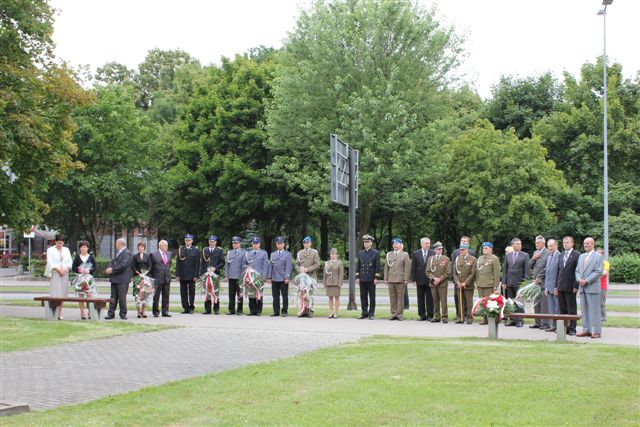 O godz. 9.00 przedstawiciele służb mundurowych, kombatantów, władz miasta i powiatu zebrały się przed Obeliskiem Niepodległości.