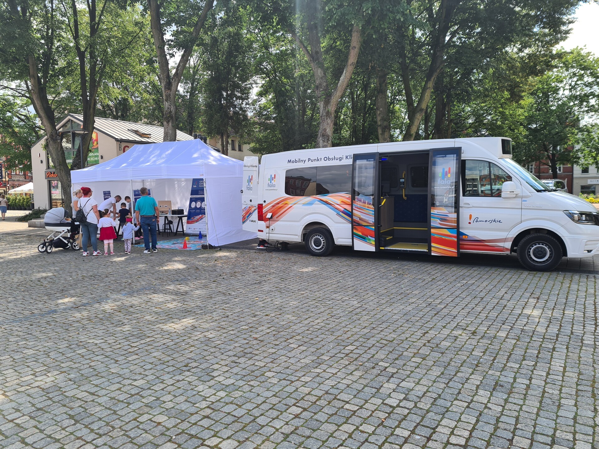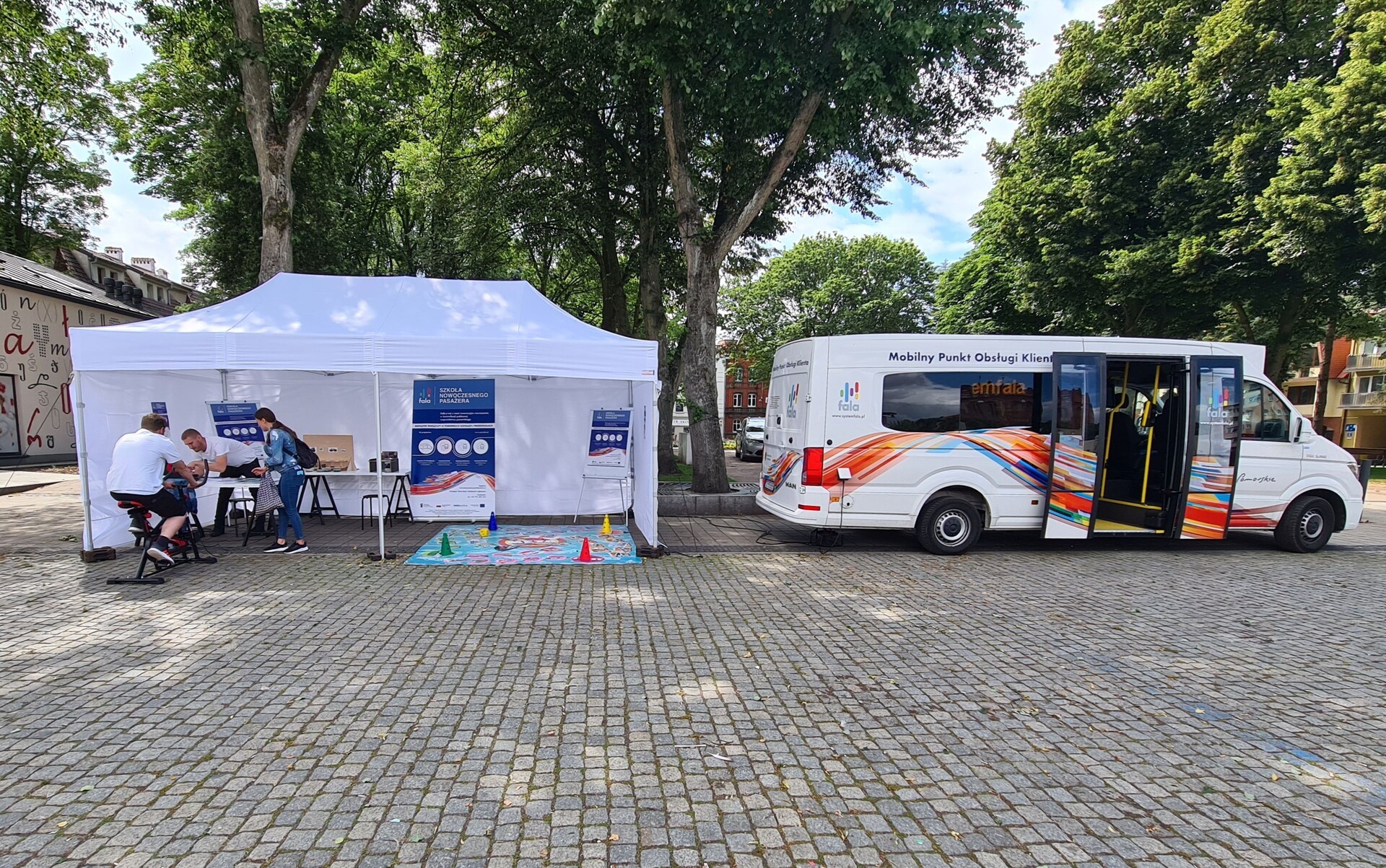 Podczas wizyty w atrakcyjnie zaprojektowanych punktach informacyjnych mieszkańcy mogą zapoznać się jak działa system FALA, w jaki sposób z niego korzystać, oraz do czego służą urządzenia montowane w pojazdach komunikacji publicznej w województwie w tym autobusach Zakładu Komunikacji Miejskiej w Lęborku.