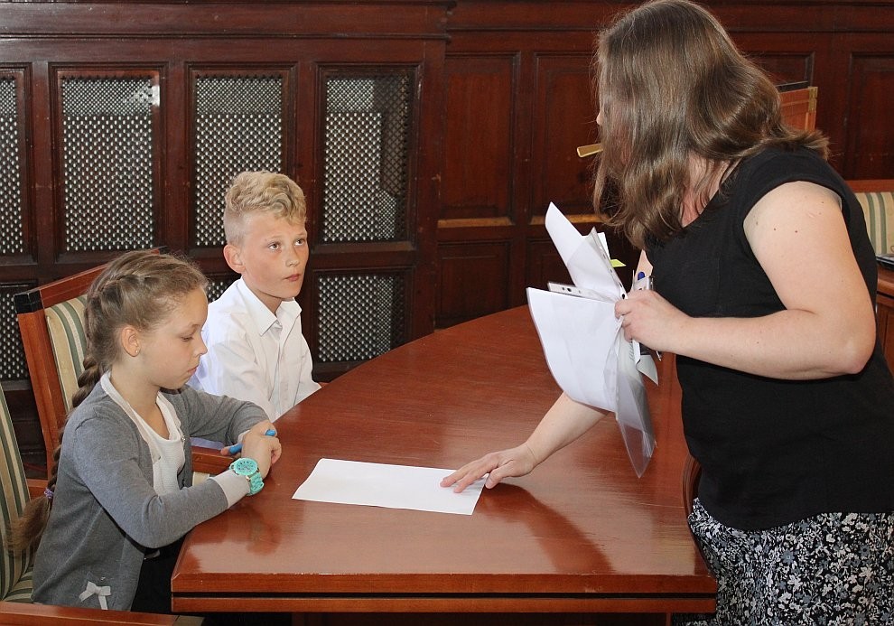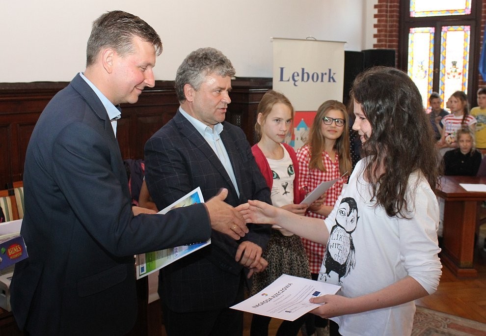 10 czerwca br. w Sali Rajców lęborskiego Ratusza odbyły się Miejskie Mistrzostwa w Szybkim Czytaniu. W trzech turach w Mistrzostwach udział wzięło prawie 70 uczniów szkół podstawowych. Uczniowie w tym roku szkolnym uczestniczyli w zajęciach pozalekcyjnych „Mądre Dziecko” (IV klasy) i „Uczeń z Charakterem” Vi VI klasy realizowanych w ramach projektu Urzędu Miejskiego „Nauka z pasją – wyrównywanie szans edukacyjnych uczniów szkół podstawowych z miasta Lębork”. Rywalizacja miała m.in. pokazać efekt zajęć z nauki szybkiego czytania. Uczniowie czytali na czas teksty o książkach i kamieniach szlachetnych, a następnie wypełniali ankietę ze zrozumienia tekstu.
