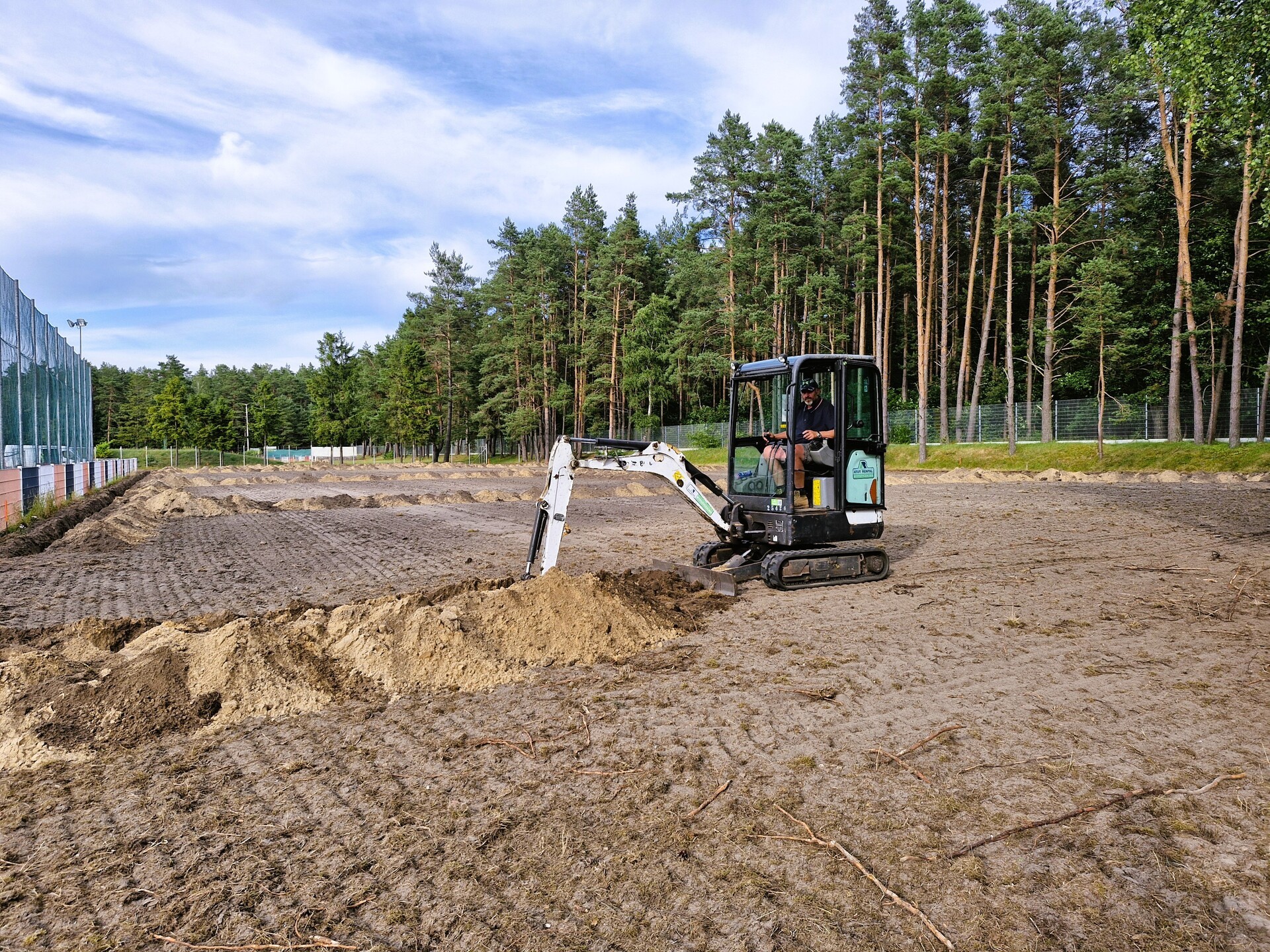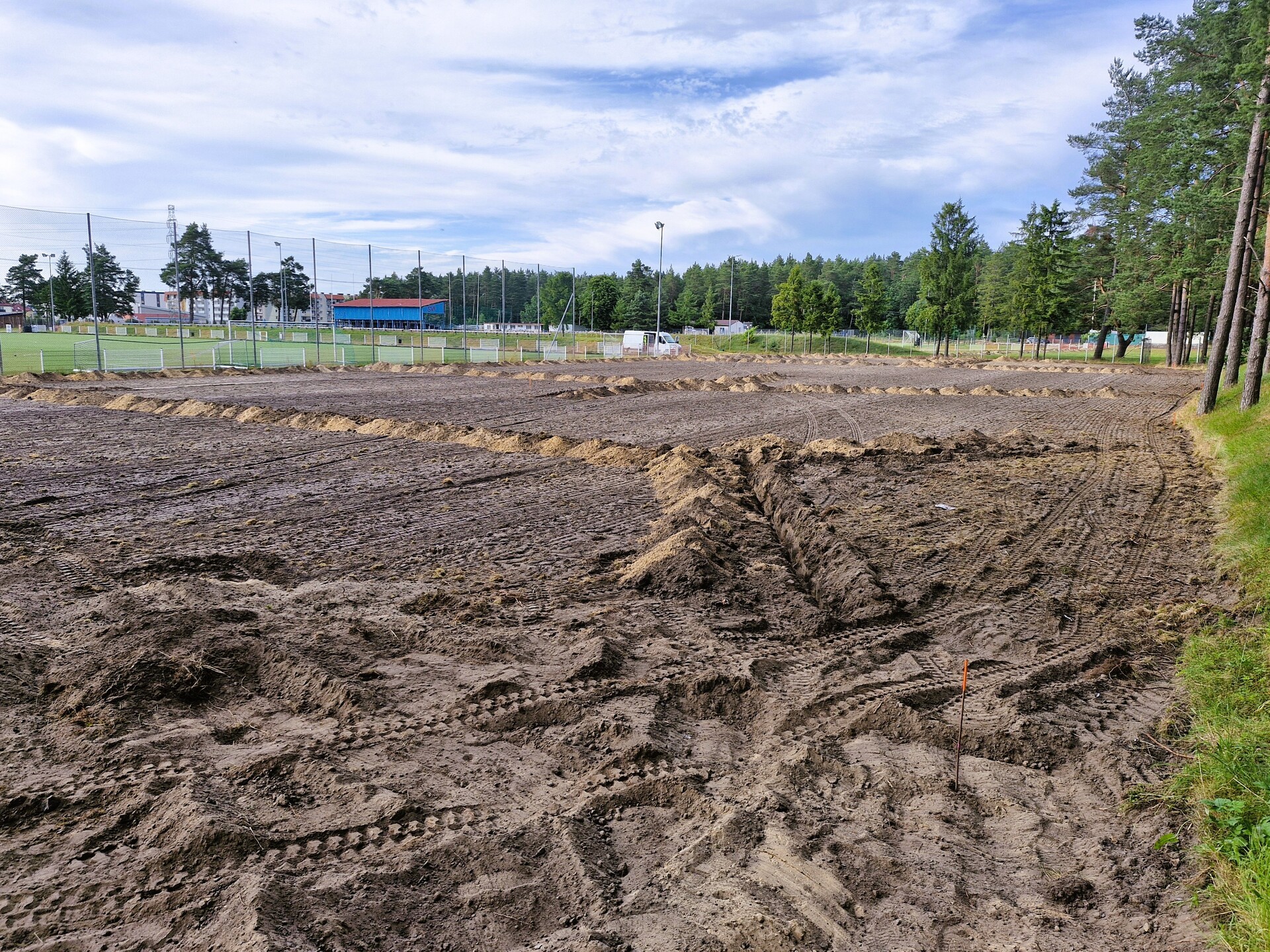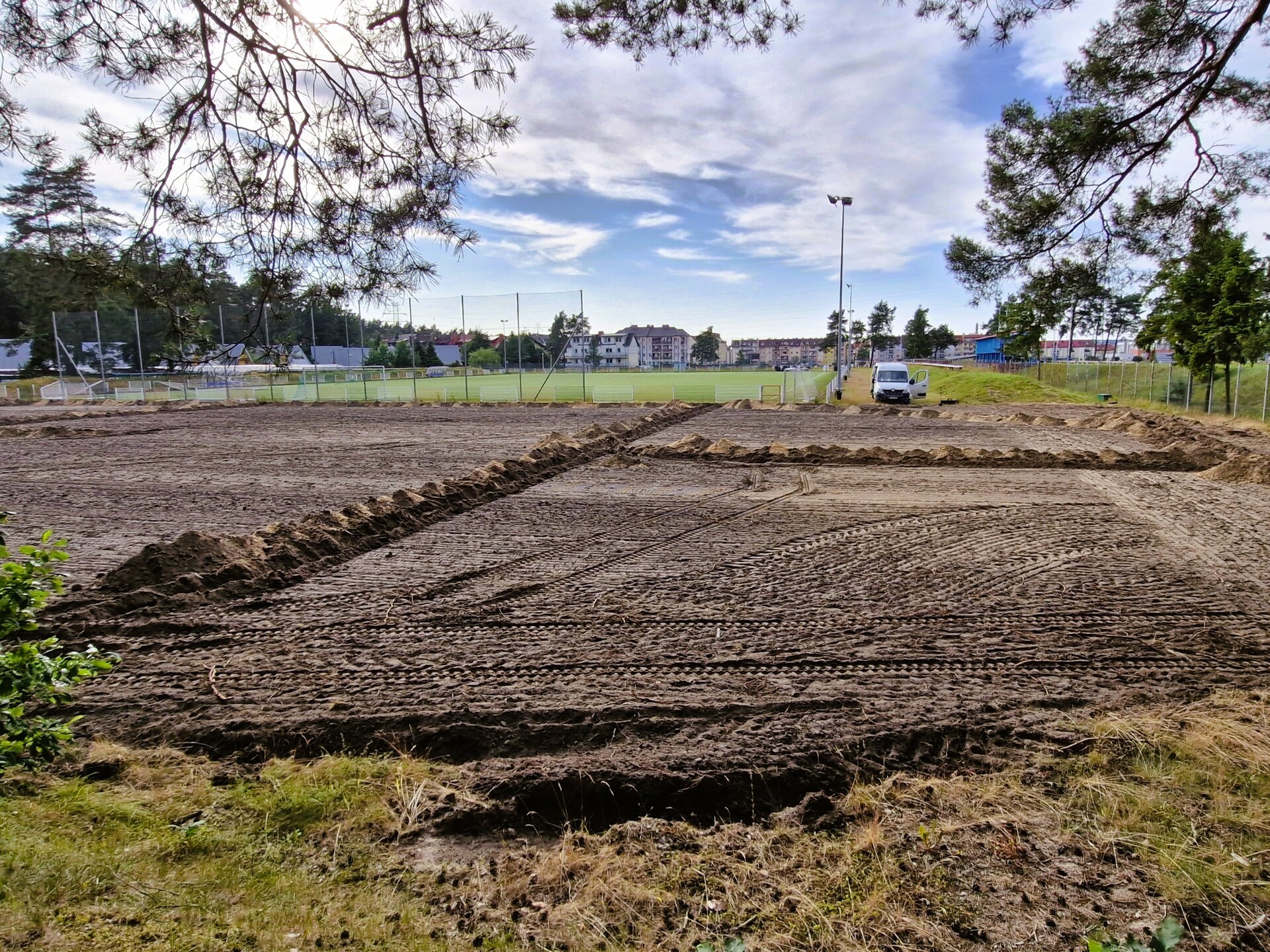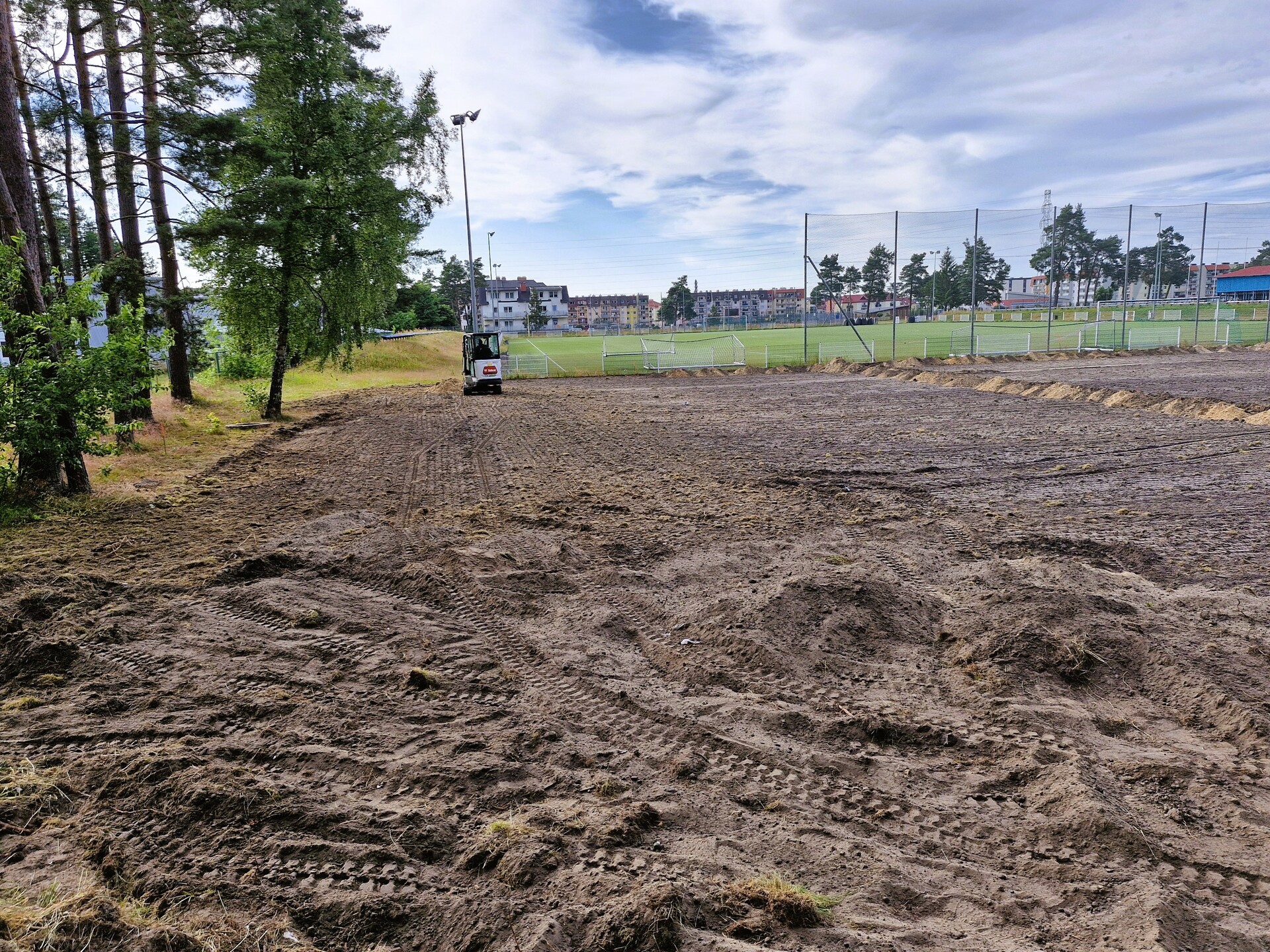 Wykonawcą zadania jest firma Trawmar z okolic Poznania. Obecnie trwają prace ziemne – teren pod przyszłą murawę został już przekopany, a w wyznaczonych wykopach montowany będzie system nawadniający. Dodatkowo wokół boiska zainstalowana zostanie siatka zabezpieczająca przed kretami.
