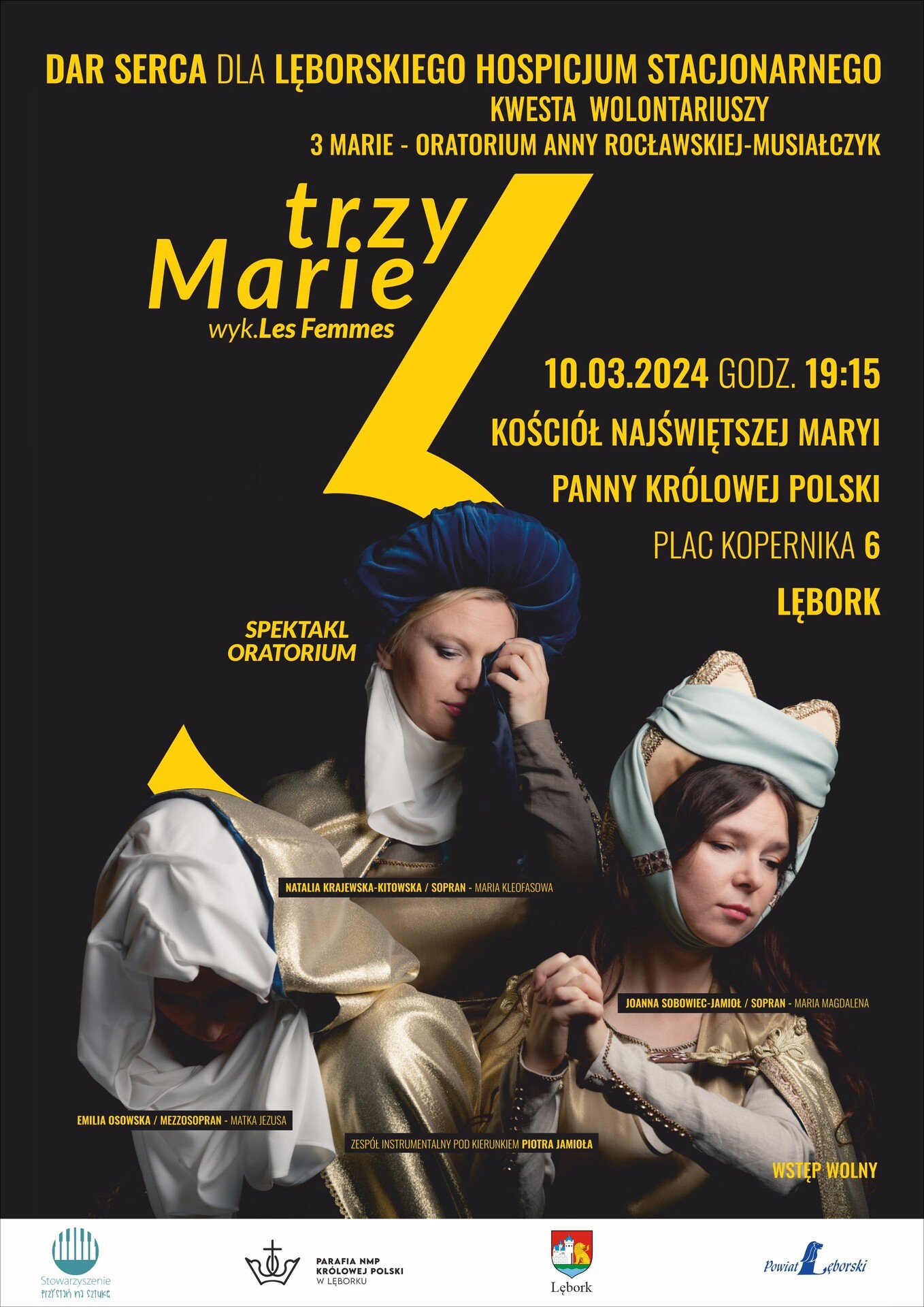 W niedzielę 10 marca o godz. 19.15 w kościele pw. Najświętszej Maryi Panny Królowej Polski przy Pl. Kopernika odbędzie się spektakl oratorium „Trzy Maryje” w wykonaniu Les Femmes Opera. Wstęp wolny.