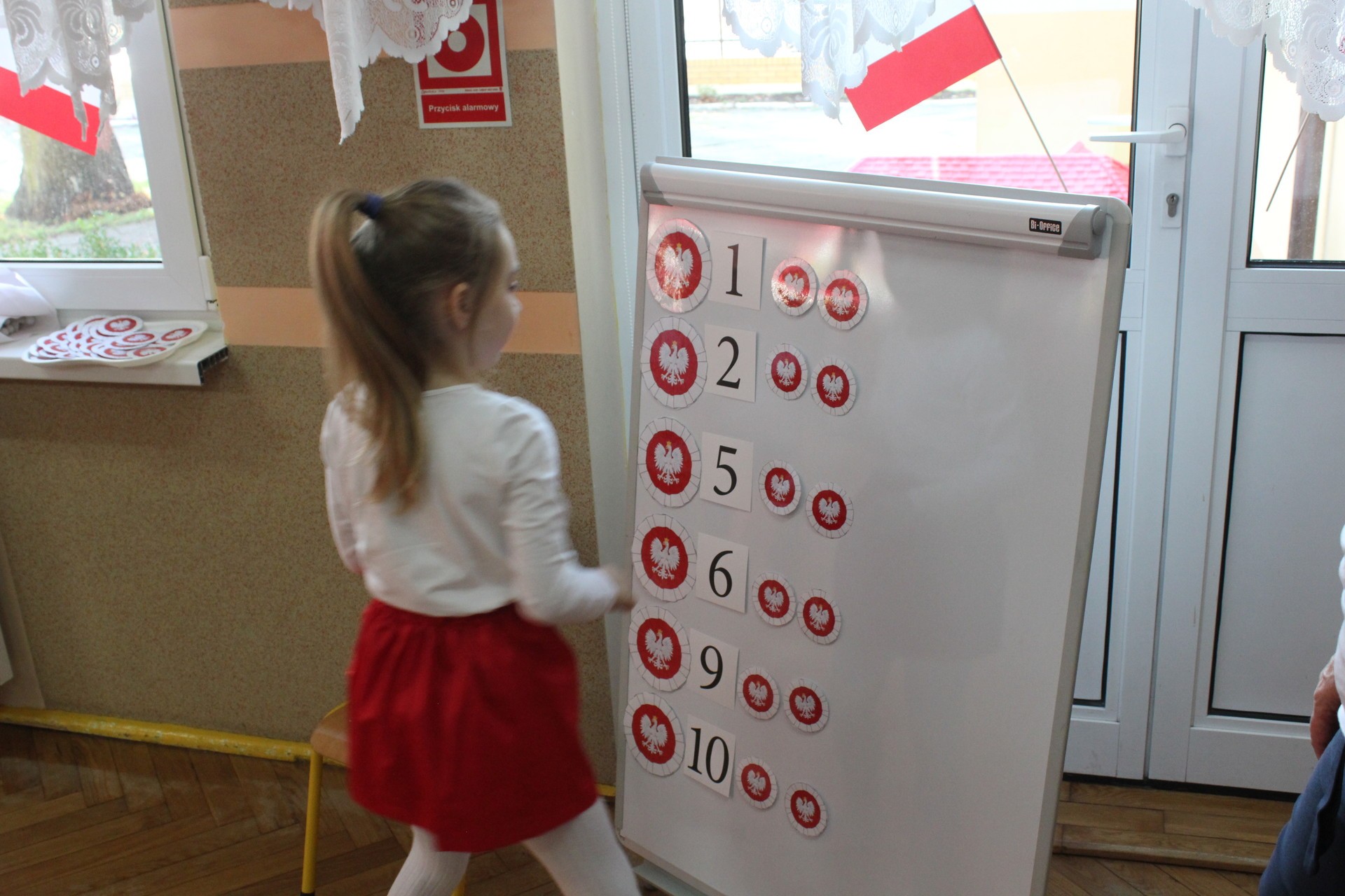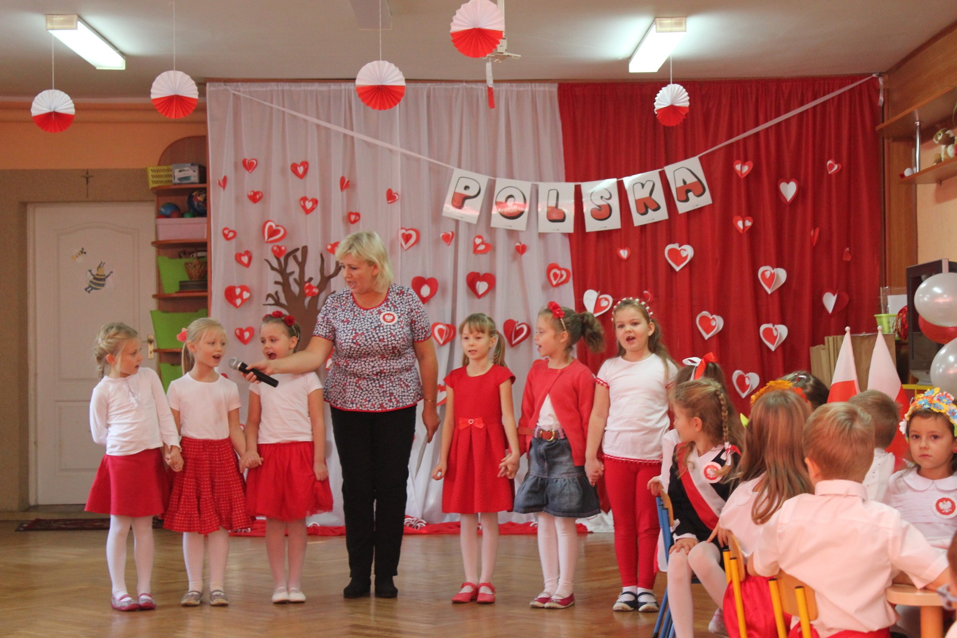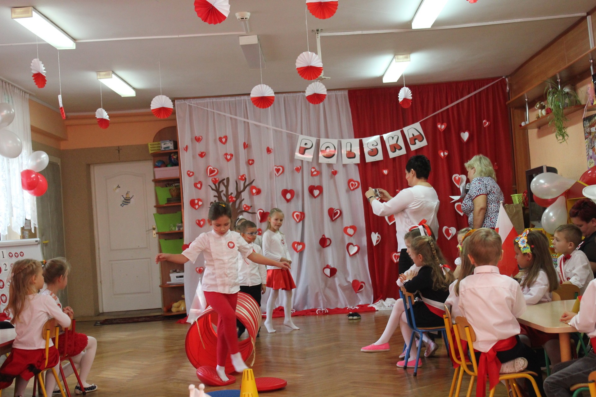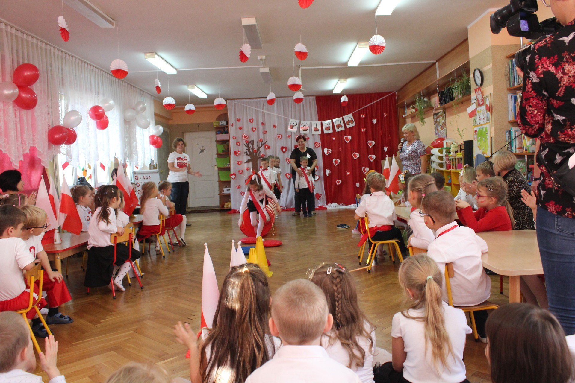 Przedszkolaki miały do wykonania zadania sprawnościowe oraz zadania związane z historią naszego państwa. Dzieci śpiewały piosenki z okazji setnej rocznicy odzyskania przez Polskę niepodległości, nie zabrakło również zabaw muzyczno-ruchowych.