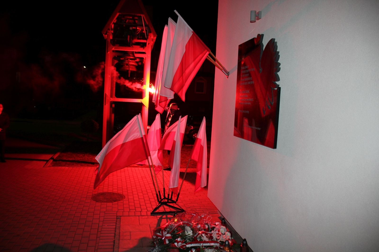 Po Mszy delegacje samorządu miejskiego, powiatowego i wojewódzkiego, delegacje organizacji społecznych i politycznych oraz rodzina rotmistrza Jana Skorba złożyły wiązanki kwiatów i zapaliły znicze pod pamiątkową tablicą. Na koniec uroczystości odmówiona została modlitwa a uczestnicy odśpiewali "Mazurek Dąbrowskiego".