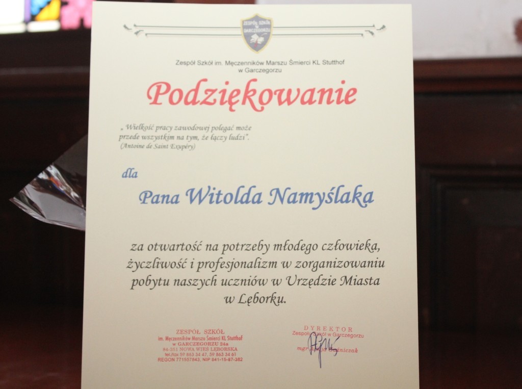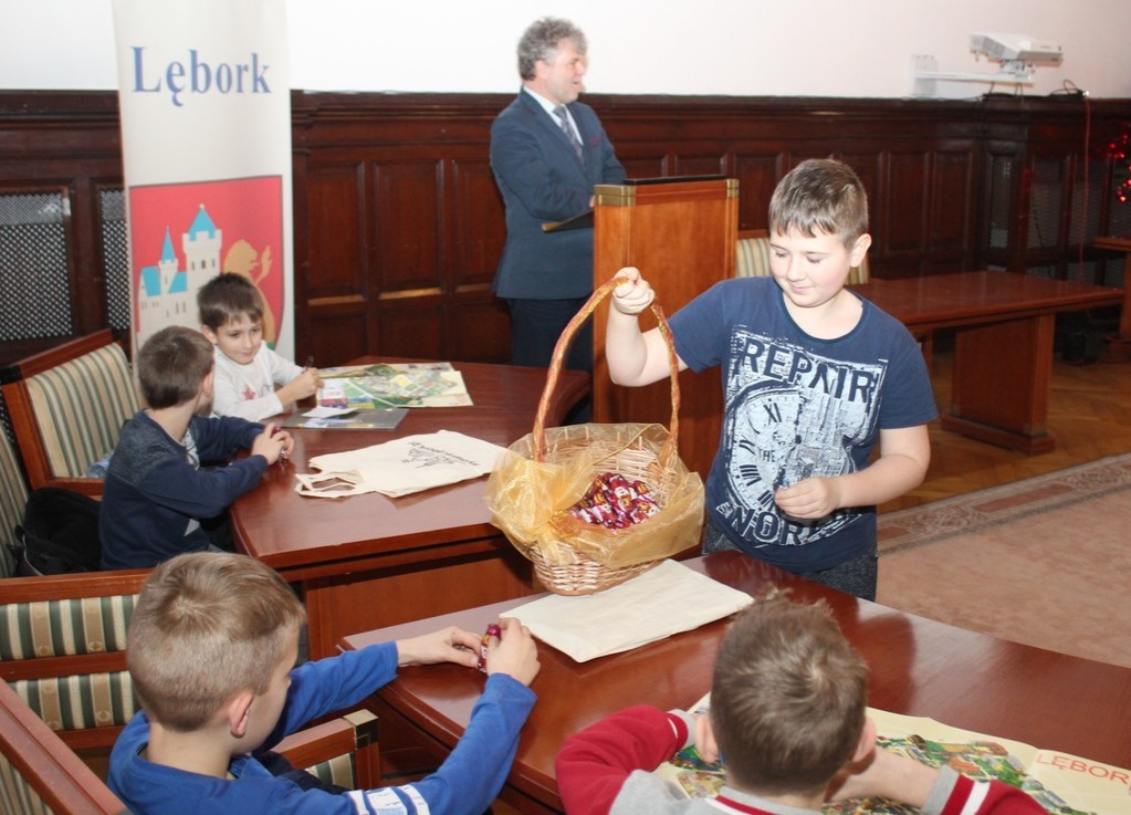 Lęborski ratusz odwiedzili w poniedziałek (12.12.2016) uczniowie IV i V klasy Zespołu Szkół w Garczegorzu. Uczniowie na Sali Rajców obejrzeli film o średniowiecznych obwarowaniach miasta, a przewodnik turystyczny Jan Kiśluk opowiedział o historii Lęborka. Niespodzianką było spotkanie z burmistrzem Lęborka. Witold Namyślak swoim gościom przekazał słodkie upominki.