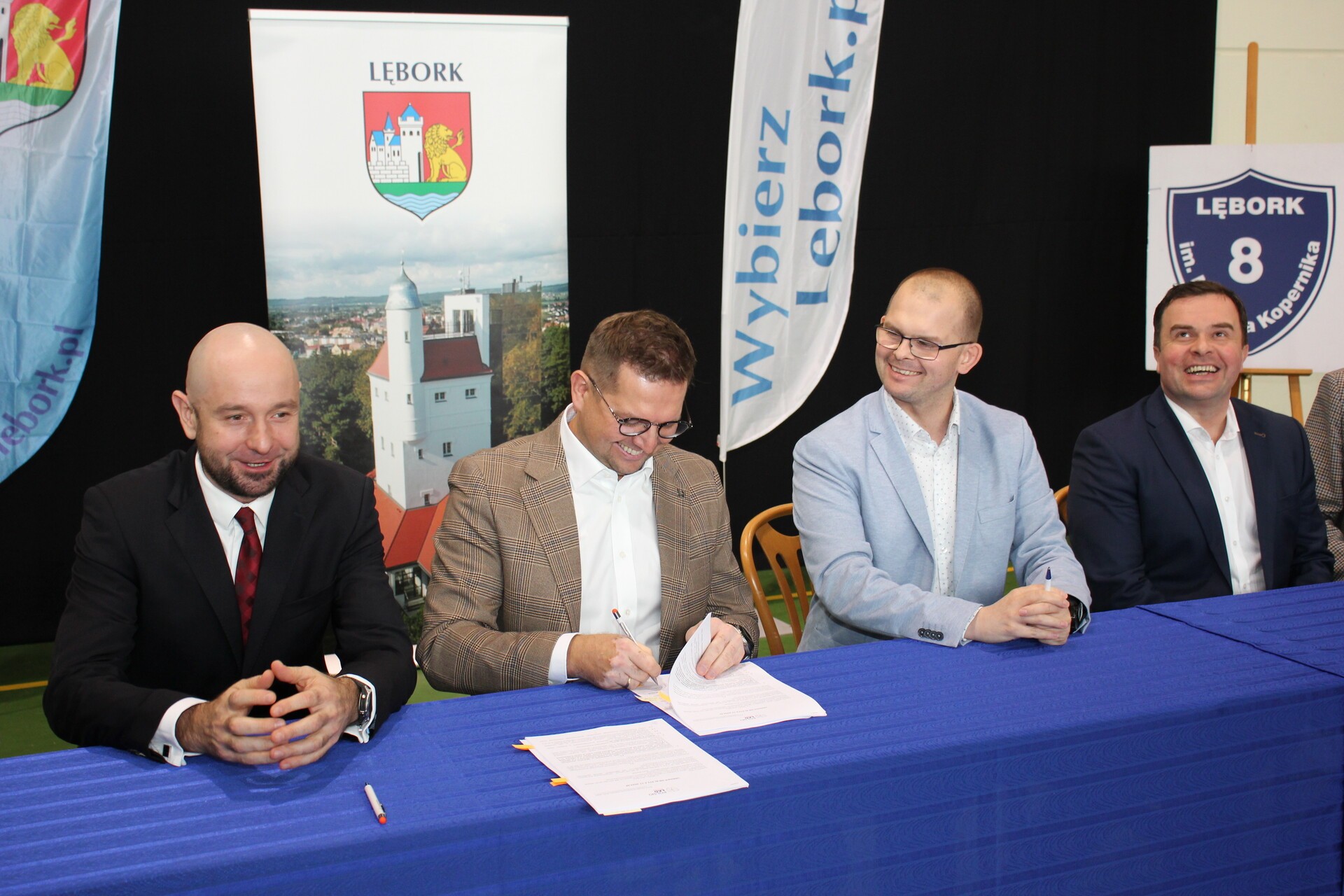 Umowy z wykonawcami 6 listopada 2024 r. podpisał burmistrz Lęborka Jarosław Litwin w obecności zastępcy burmistrza Krzysztofa Króla, naczelnika Wydziału Realizacji Inwestycji UM Romualda Babula i dyrektora Szkoły Podstawowej nr 8 Daniela Nadworskiego. Wykonawców reprezentował Krzysztof Wroński - członek zarządu spółki Concept Bau sp. z o.o oraz Bartosz Marek Purzyński – zastępca dyrektora Departamentu Sprzedaży, pełnomocnik Energa Oświetlenie Sp. z o.o.