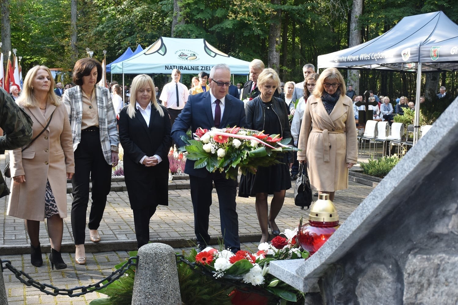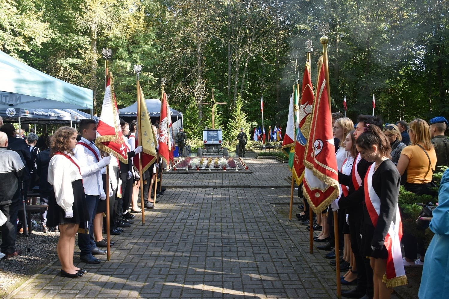 W uroczystości z asystą kompanii honorowej 1. lęborskiego batalionu zmechanizowanego im. gen. Jerzego Jastrzębskiego wzięli udział samorządowcy, przedstawiciele administracji różnych szczebli, instytucji gminnych, miejskich i powiatowych, organizacji społecznych, politycznych, służby mundurowe, młodzież, a przede wszystkim rodziny, których bliscy spoczywają na tym cmentarzu zebrali się tego dnia, by złożyć hołd pamięci i po raz kolejny dać wyraz sprzeciwu wobec wojny, ludobójstwa, jako przejawów uniwersalnego wymiaru czystej postaci zła.