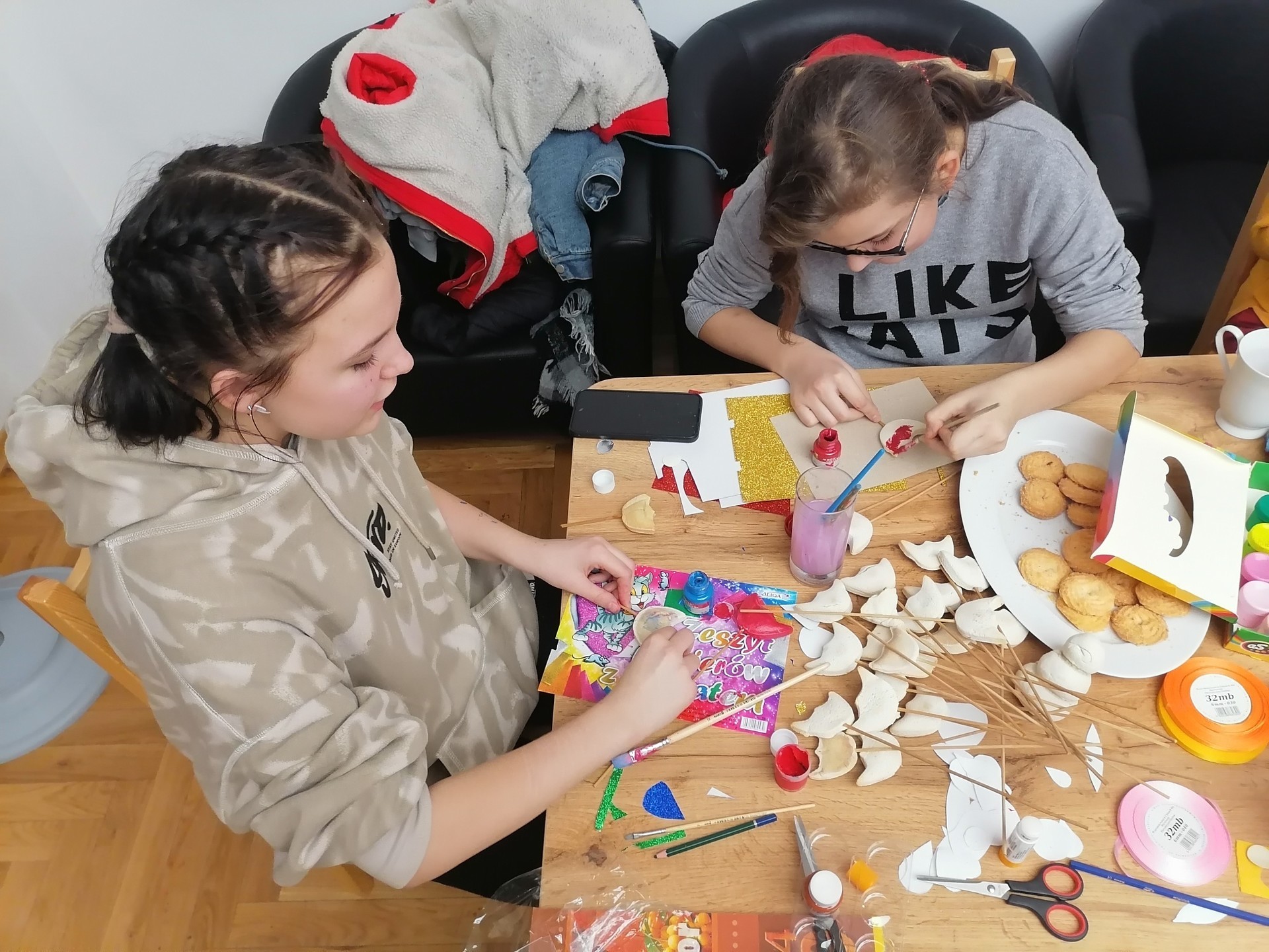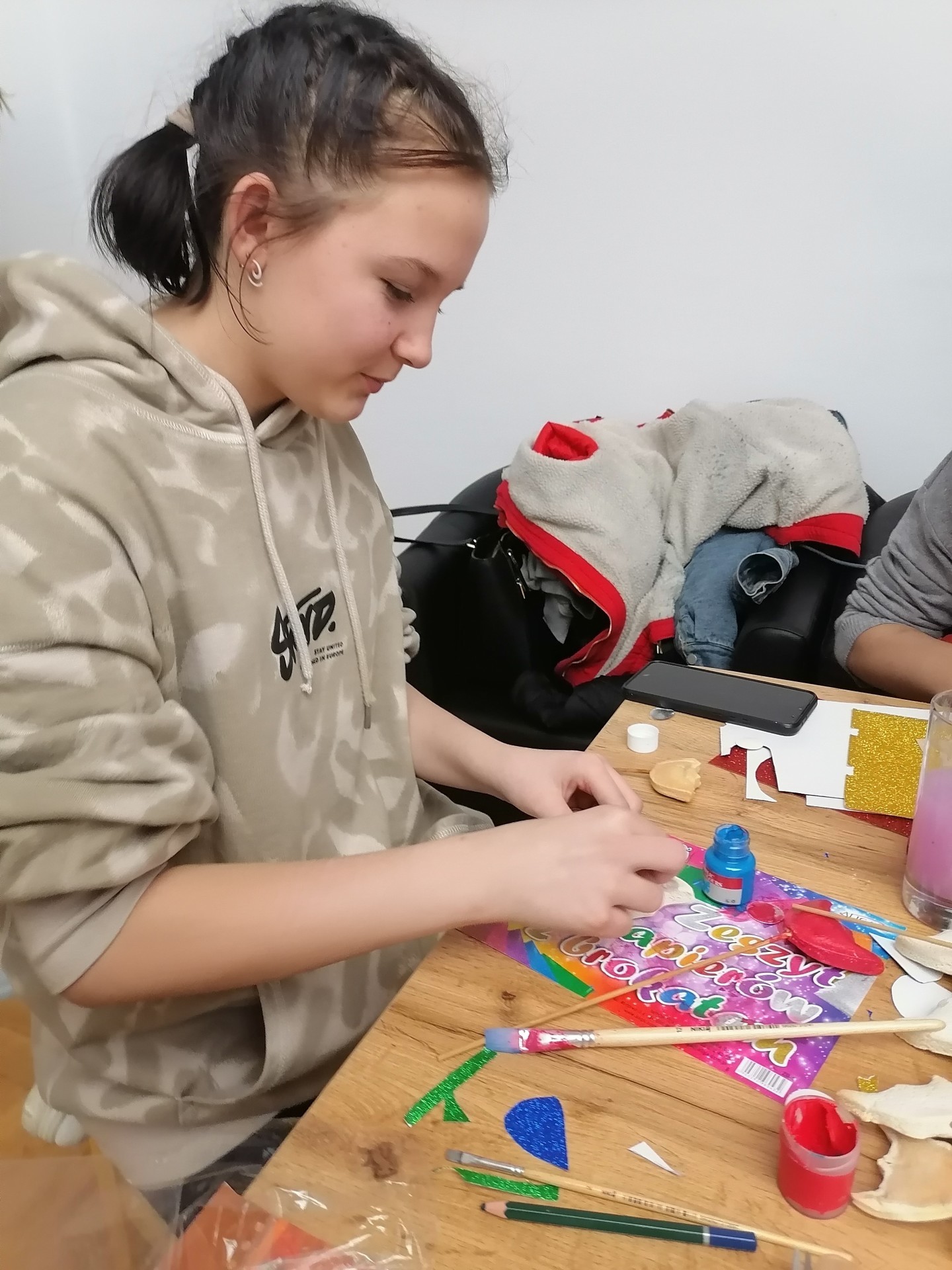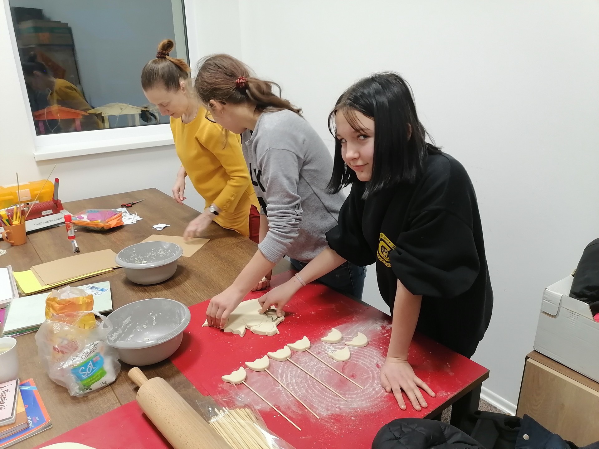 Młodzież uczestnicząca w zajęciach ze streetworkerkami w ramach projektu „Ożywiony Lębork NOWY ŚWIAT – usługi społeczne dla mieszkańców obszaru rewitalizacji” przygotowała upominki, którymi obdaruje swoje babcie i dziadków obchodzących święto 21 i 22 stycznia. Podczas zajęć udało się stworzyć piękne ręcznie malowane kwiaty z masy solnej oraz kartki z życzeniami.