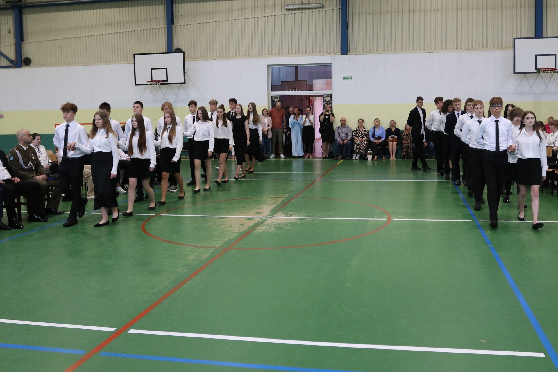Uroczysty apel rozpoczął polonez w wykonaniu absolwentów, po którym wprowadzony został sztandar szkoły, odśpiewanie hymnu państwowego, przekazanie sztandaru uczniom młodszych klas i złożenie ślubowania przez absolwentów.