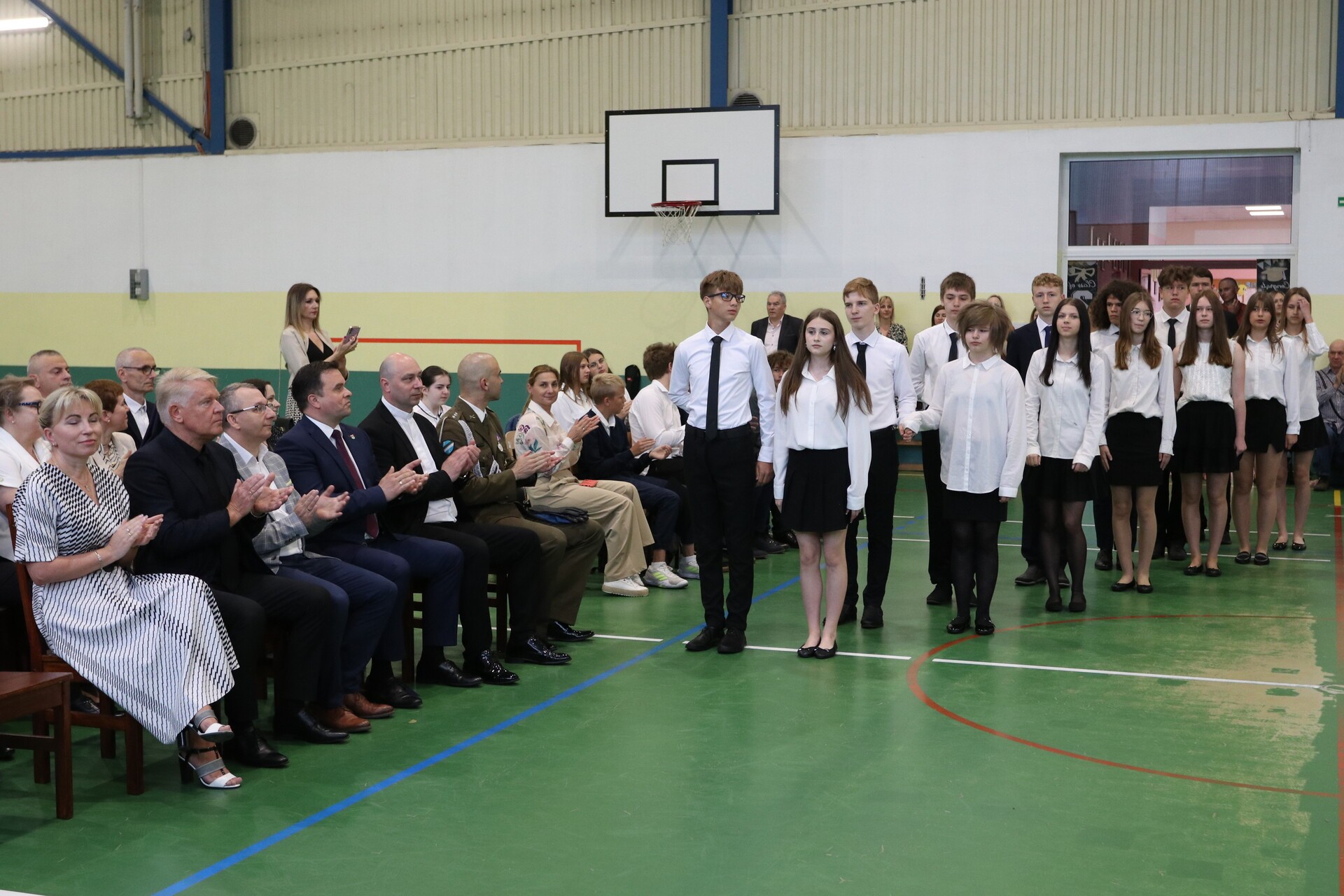 Wśród gości uroczystości był także proboszcz Parafii św. Maksymiliana Kolbe ks. Wojciech John i wiceprzewodniczący Rady Rodziców Łukasz Kuriata oraz porucznik Bartosz Matyka z 1. Lęborskiego Batalionu Zmechanizowanego.
