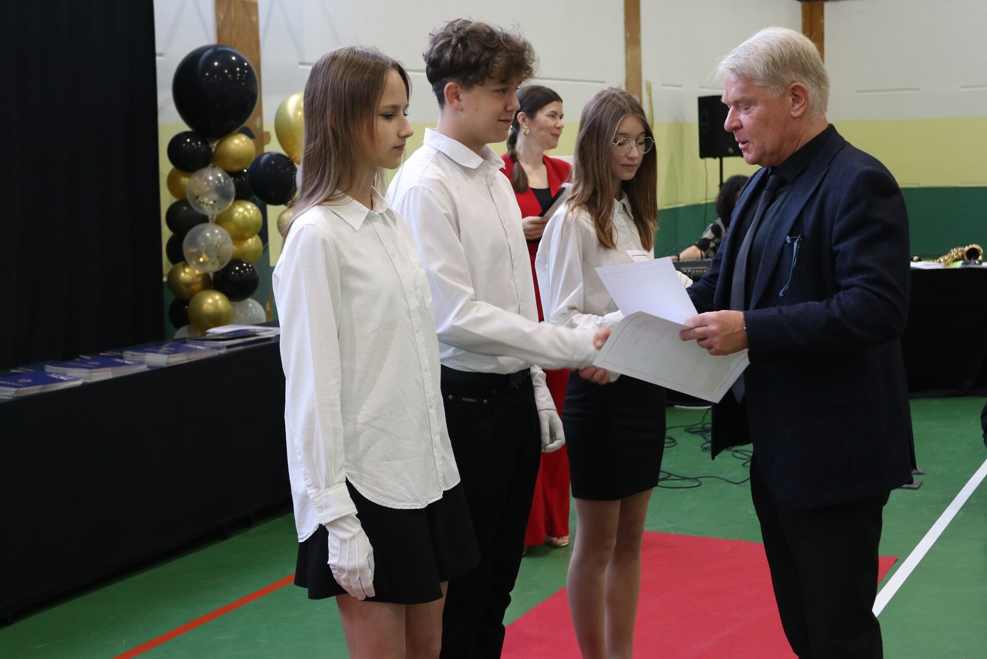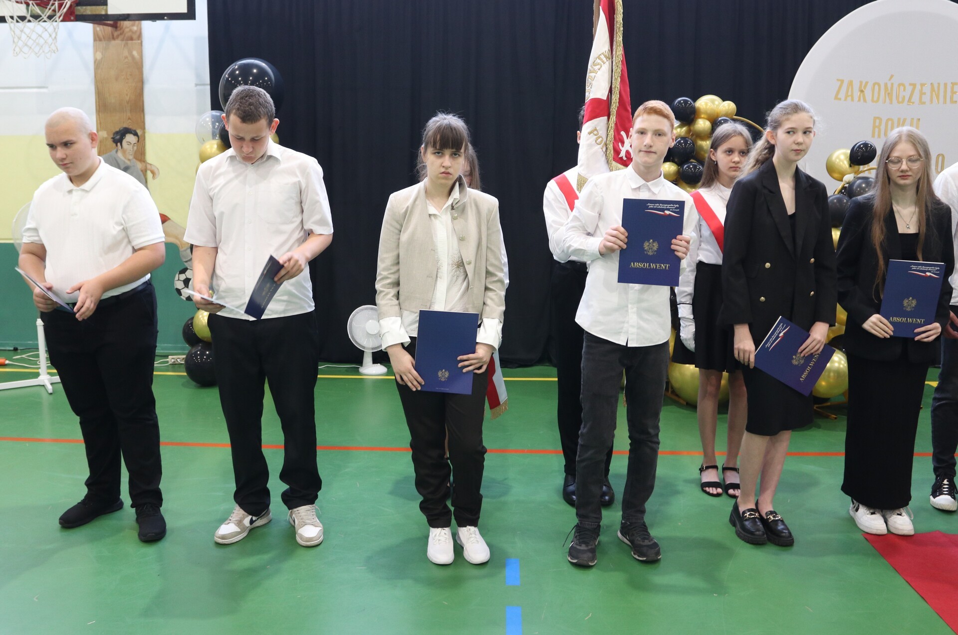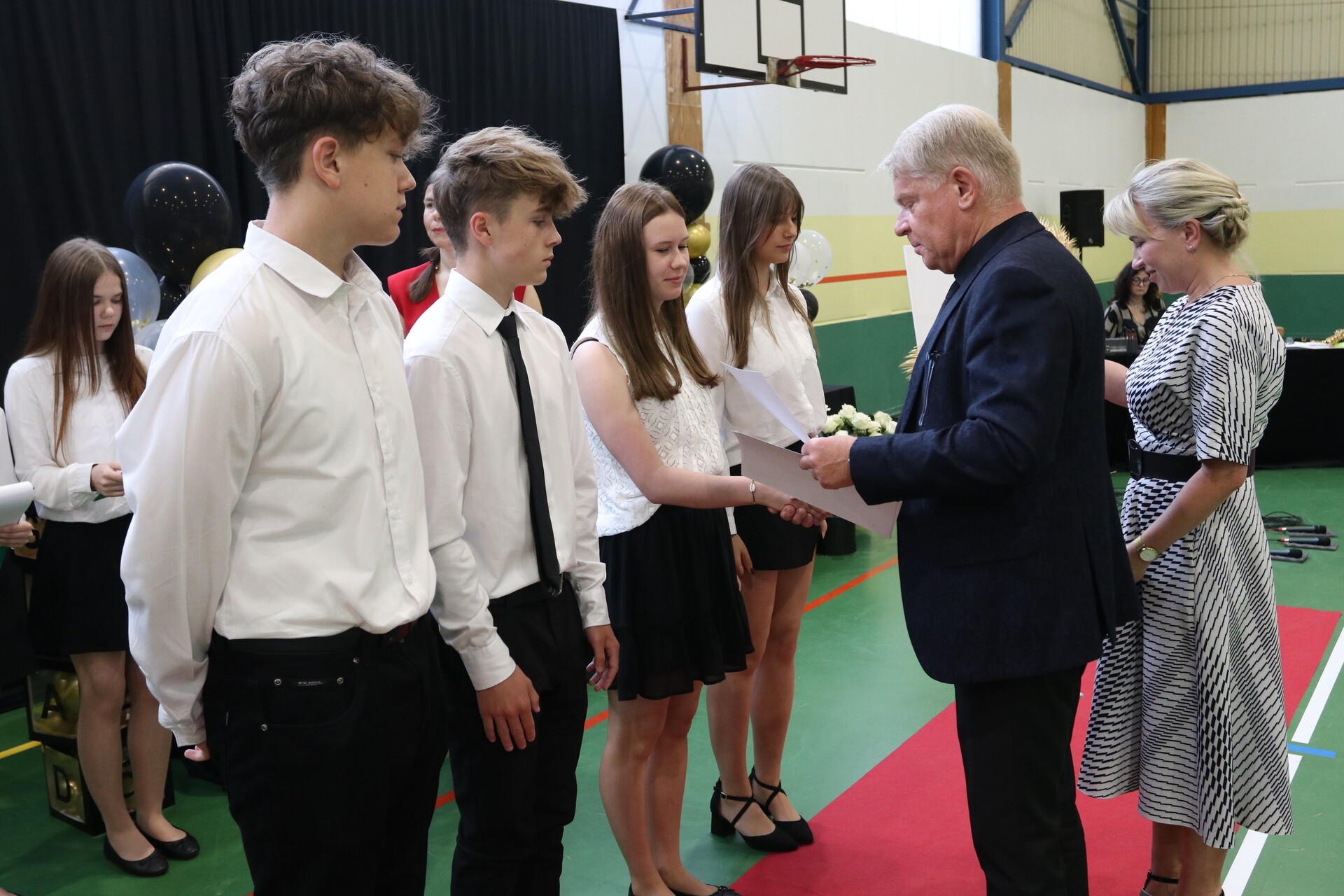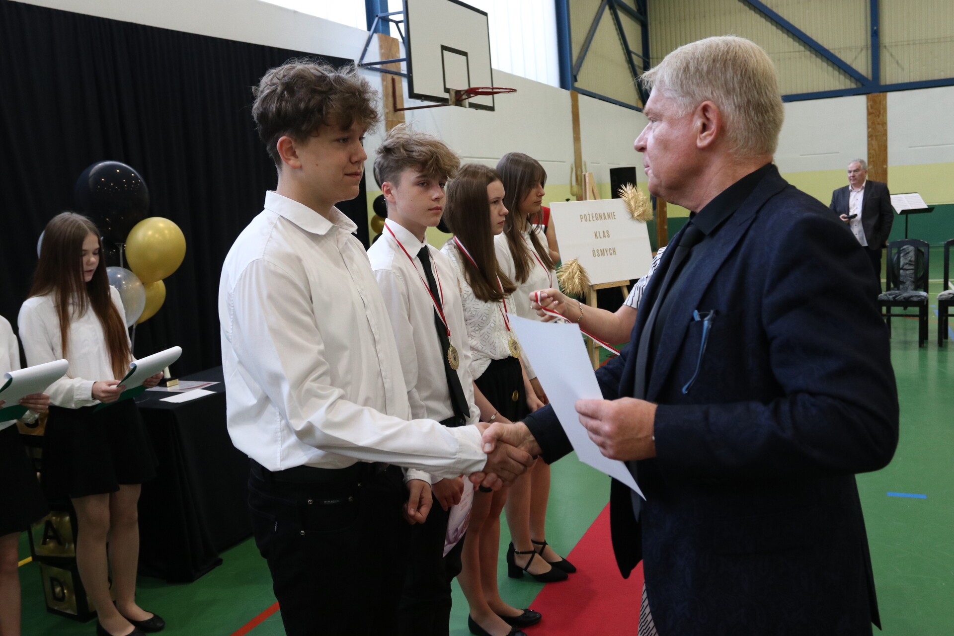 Głównym wydarzeniem uroczystości było wręczenie przez dyrektora szkoły Krzysztofa Wettę i wicedyrektor Izabelę Zarębę świadectw z wyróżnieniem dla uczniów, którzy wykazali się nie tylko wysokimi osiągnięciami i systematyczną pracą, ale także aktywnie angażowali się w życie szkoły poprzez różne działania pozalekcyjne. To właśnie oni stali się wzorem dla swoich rówieśników, inspirując ich do dążenia do sukcesu i doskonalenia się we wszystkich dziedzinach życia.