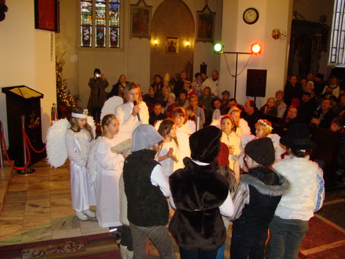 Jasełkowe anioły wykonał Środowiskowy Dom Samopomocy LWIĄTKO, nagłośnienie i oświetlenie zapewnił Młodzieżowy Dom Kultury, dekorację - Szkoła Podstawowa nr 3.