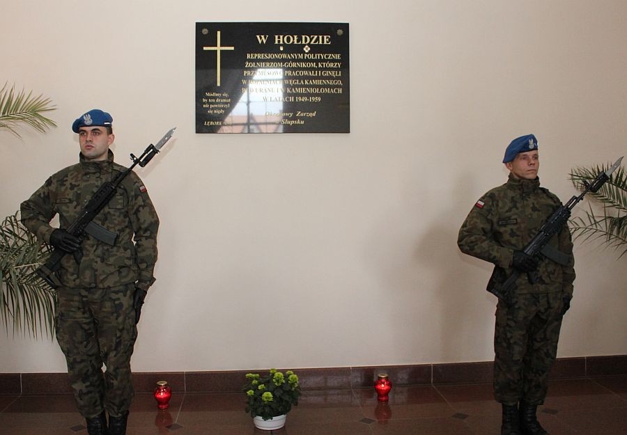Po Mszy Św. w której uczestniczyli samorządowcy, służby mundurowe, w tym poczet sztandarowy z 1 lęborskiego batalionu zmechanizowanego im. gen. Jerzego Jastrzębskiego, organizacje kombatanckie i przede wszystkim ostatni żyjący żołnierze-górnicy i ich rodziny złożono kwiaty i zapalono znicze pod odsłoniętą w 2007 roku tablicą poświęconą pamięci żołnierzy-górników.