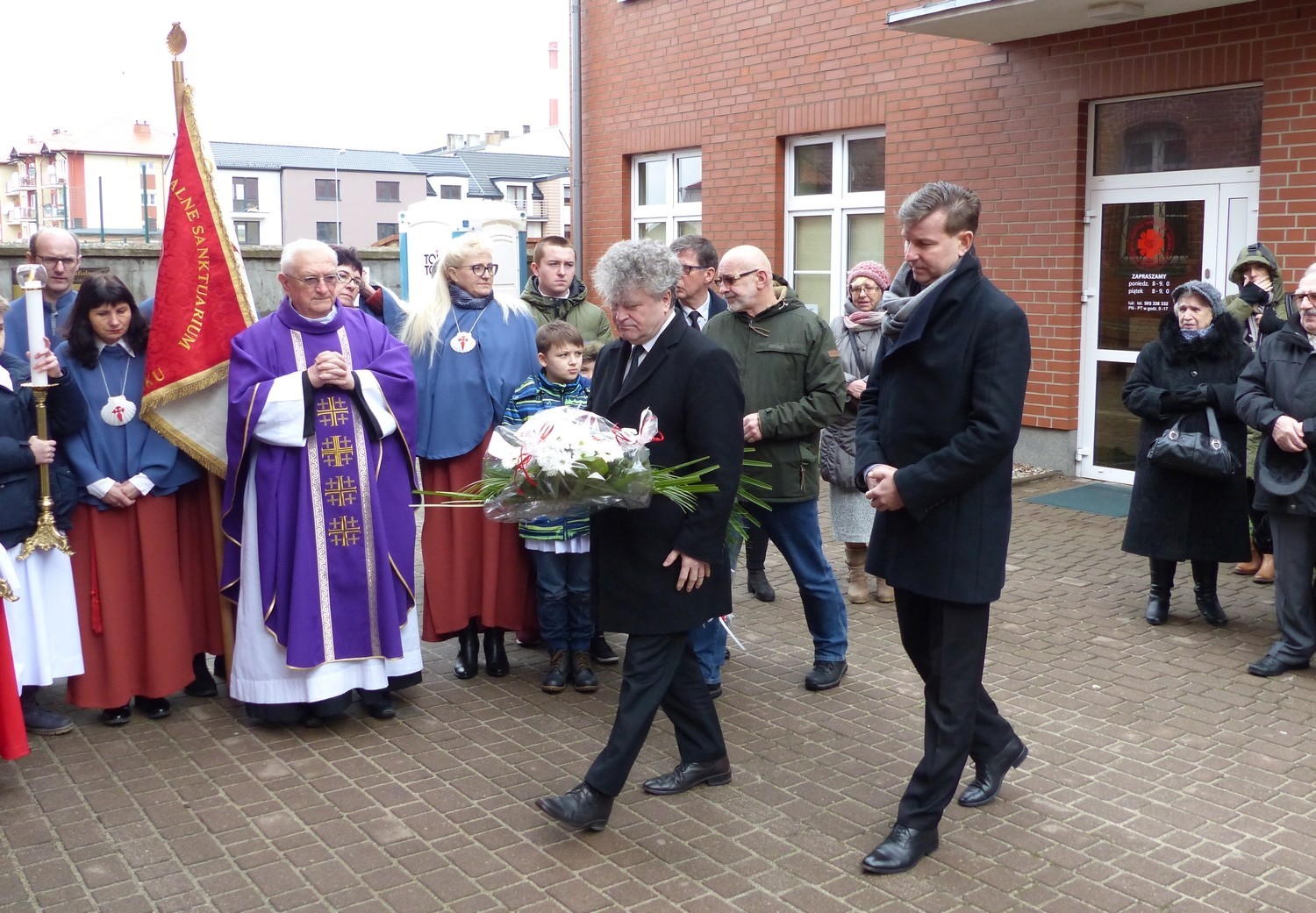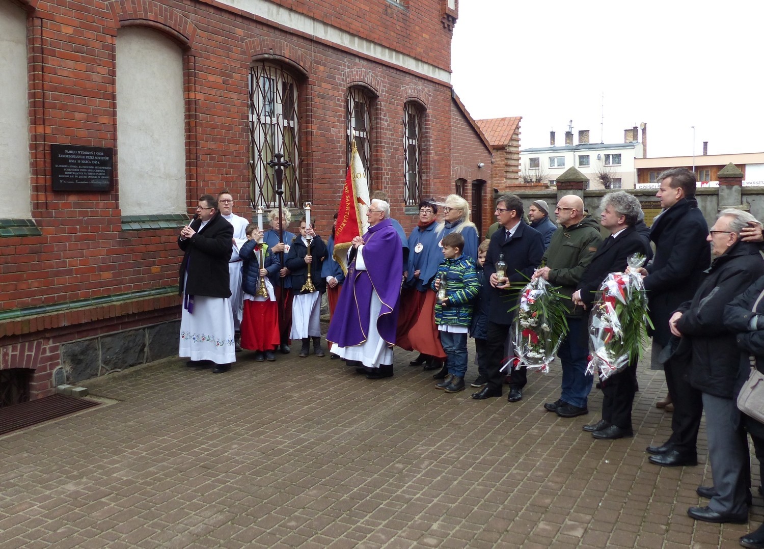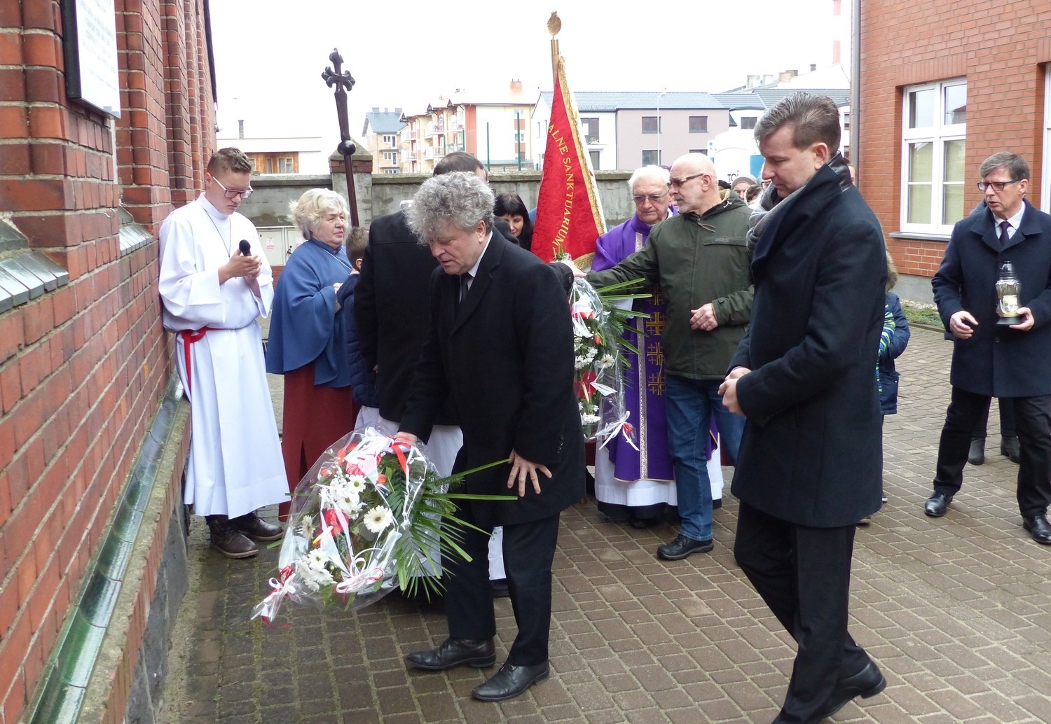 W uroczystości upamiętniającej tragiczne losy miasta i jego mieszkańców wzięli udział księża, mieszkańcy, parafianie. Kwiaty w ich imieniu złożył Burmistrz Miasta Witold Namyślak i Sekretarz Miasta Marian Kurzydło.