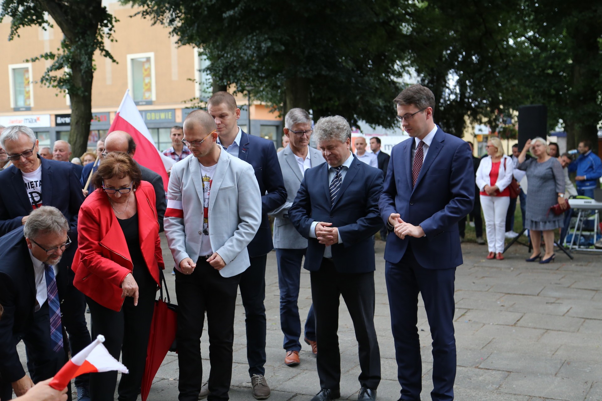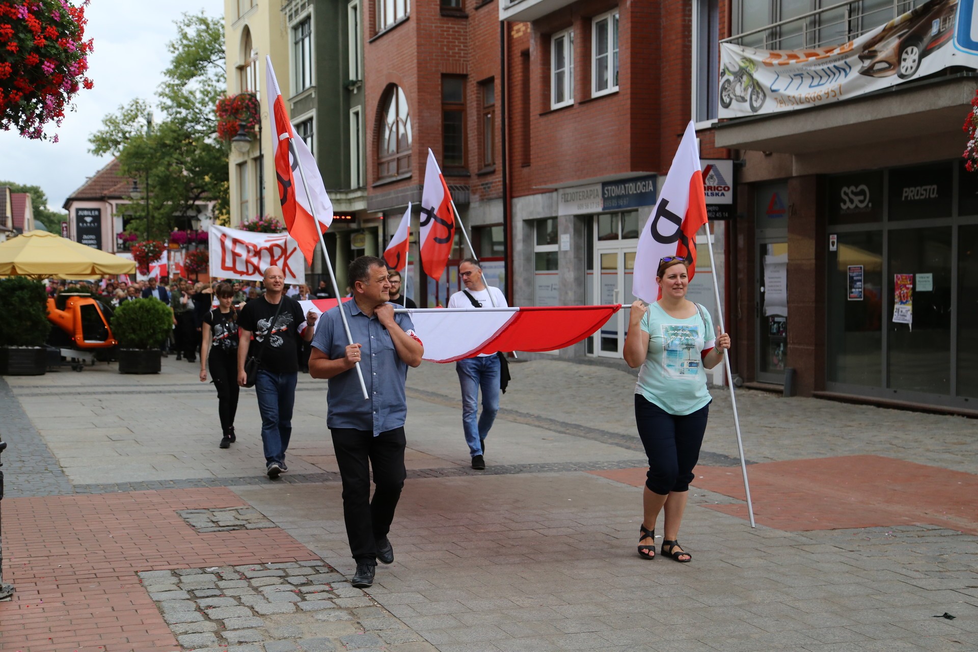 W uroczystościach licznie wzięli udział mieszkańcy, Sekretarz Stanu w Kancelarii Rady Ministrów Piotr Műller, władze samorządowe z Burmistrzem Lęborka Witoldem Namyślakiem, Starostą Lęborskim Alicją Zajączkowską i Przewodniczącym Rady Miejskiej Jarosławem Litwinem. Honorową asystę zapewnili harcerze z Hufca Lębork, strażacy z Ochotniczej Straży Pożarnej w Lęborku, a oprawę muzyczną i prowadzenie wspólnego śpiewu zapewniły wokalistki szkoły wokalu przy LCK „Fregata” Anna Krawczykowska i Aleksandra Jankowska przy akompaniamencie dr Tadeusza Formeli.