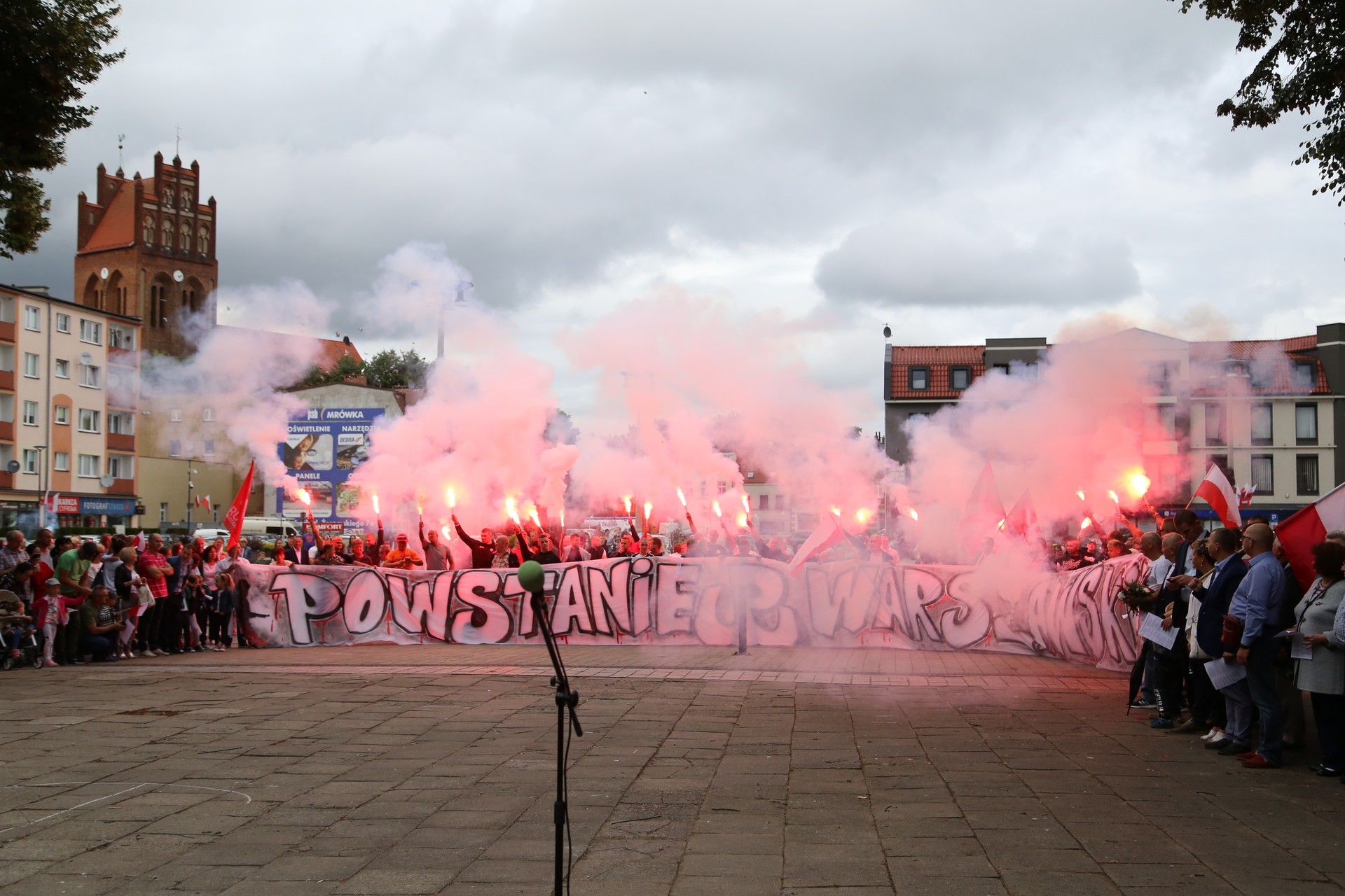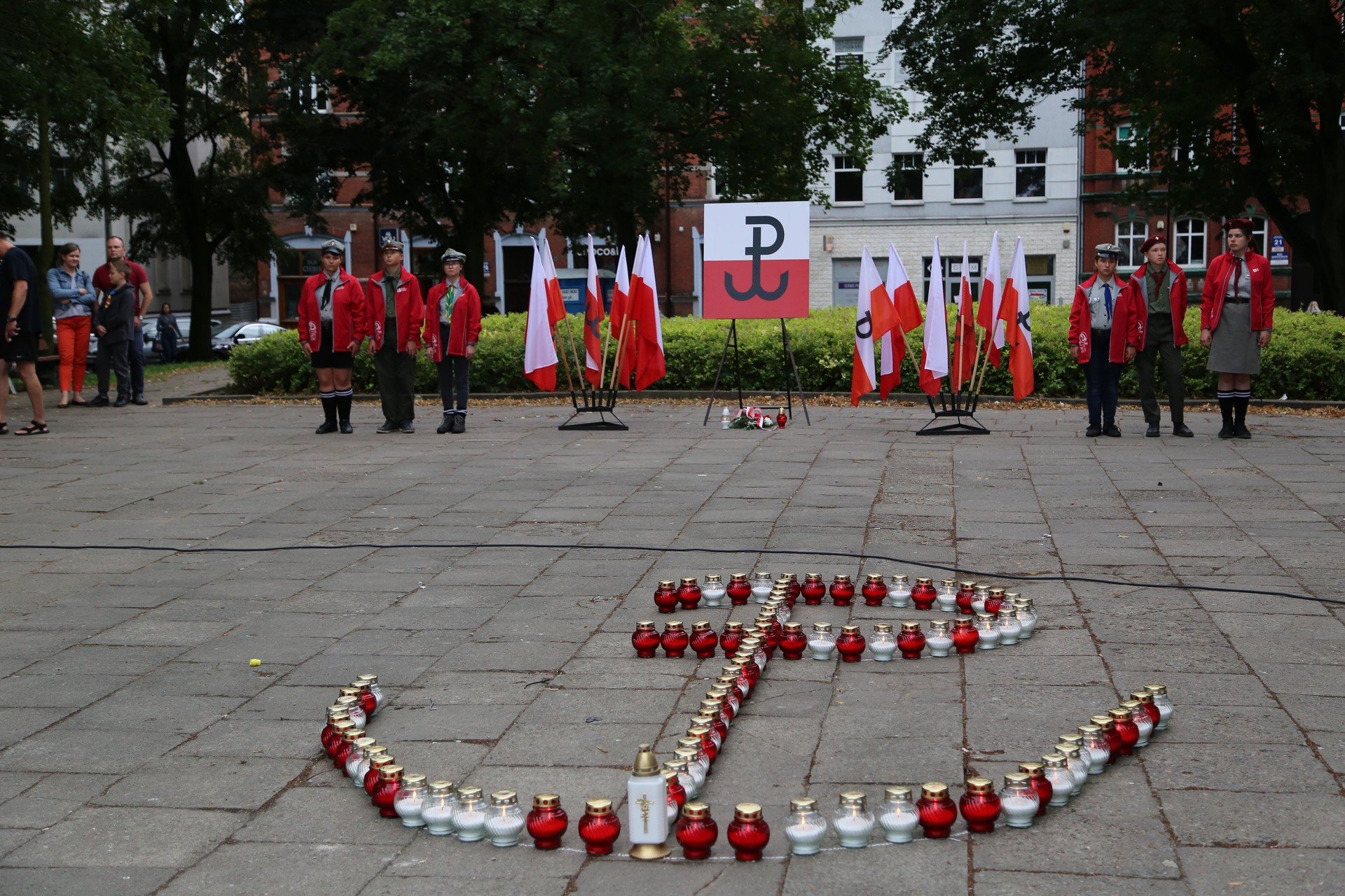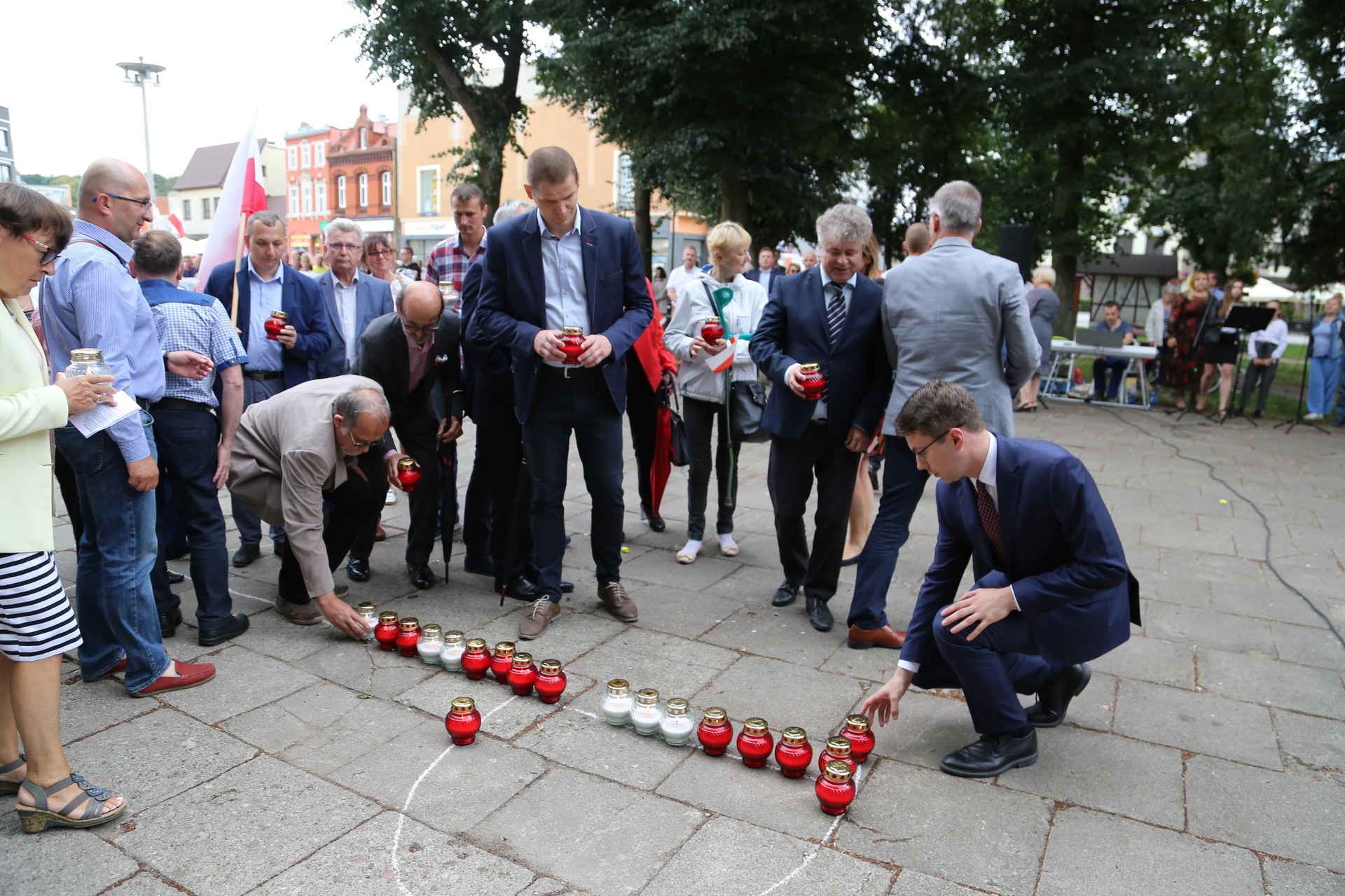 Przemarsz spod Pomnika Poległych Pocztowców na plac Pokoju, syreny o godzinie 17, Hymn, okolicznościowe przemówienia, wspólne śpiewanie powstańczych pieśni patriotycznych oraz ułożenie z białych i czerwonych zniczy symbolu Polski Walczącej. Tak 1 sierpnia lęborczanie upamiętnili 75. Rocznicę wybuchu Powstania Warszawskiego.