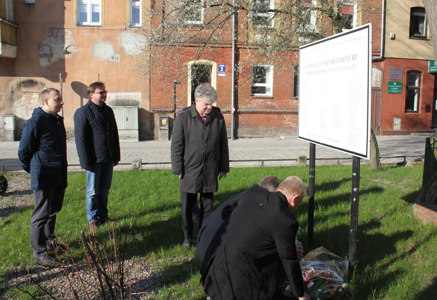 Wycie syren o godz. 8.41 przypomniało lęborczanom o obchodzonej dziś 9. rocznicy Katastrofy Smoleńskiej. Po minucie ciszy pod tablicą pamiątkową przy Sanktuarium św. Jakuba Ap. delegacja władz miasta i powiatu oraz Prawa i Sprawiedliwości złożyła kwiaty. Samorząd Lęborka podczas uroczystości reprezentował Burmistrz Witold Namyślak, Sekretarz Miasta Marian Kurzydło oraz radni Leszek Leciejewski i Łukasz Kuriata. Obecny był także Wicestarosta Powiatu Lęborskiego Edmund Głombiewski oraz radny powiatowy Jacek Perłak.