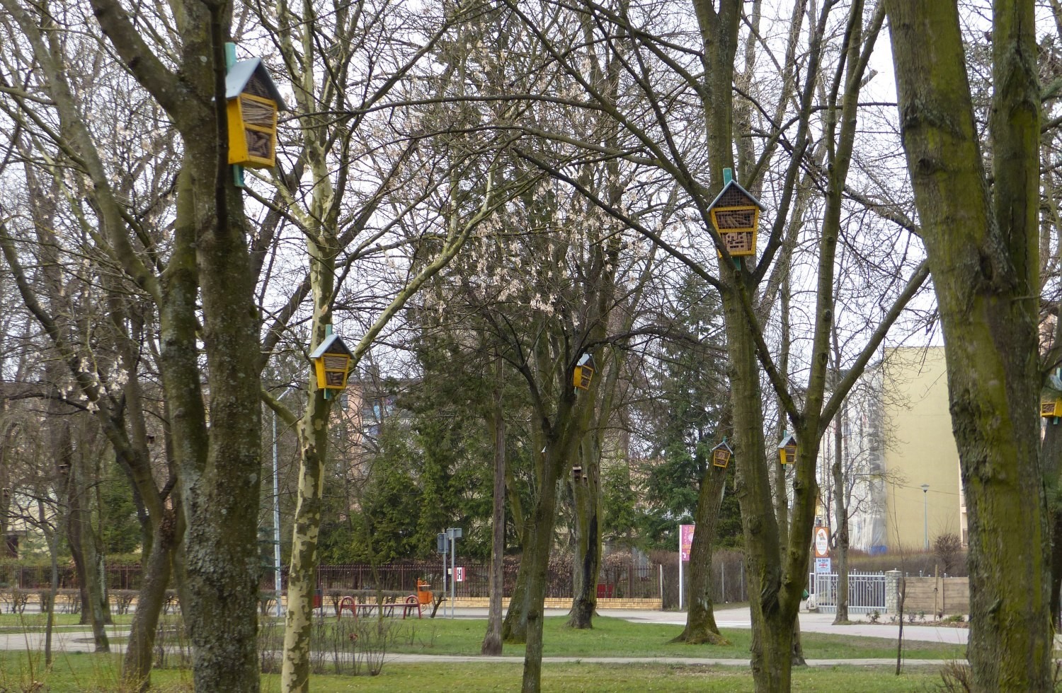 Budki dla ptaków i owadów mają zwiększyć bioróżnorodność w centralnym parku miasta. Budek dla ptaków zamontowano 80 w dwóch rodzajach. Z mniejszym otworem przeznaczone są dla sikorek, muchołówek, pleszek, wróbli, kowalików, dzięciołków, szpaków czy dzięciołów. Mniejsze budki z większym otworem lubią pliszki, kopciuszki czy rudziki. 40 żółtych budek przeznaczonych jest na owady.