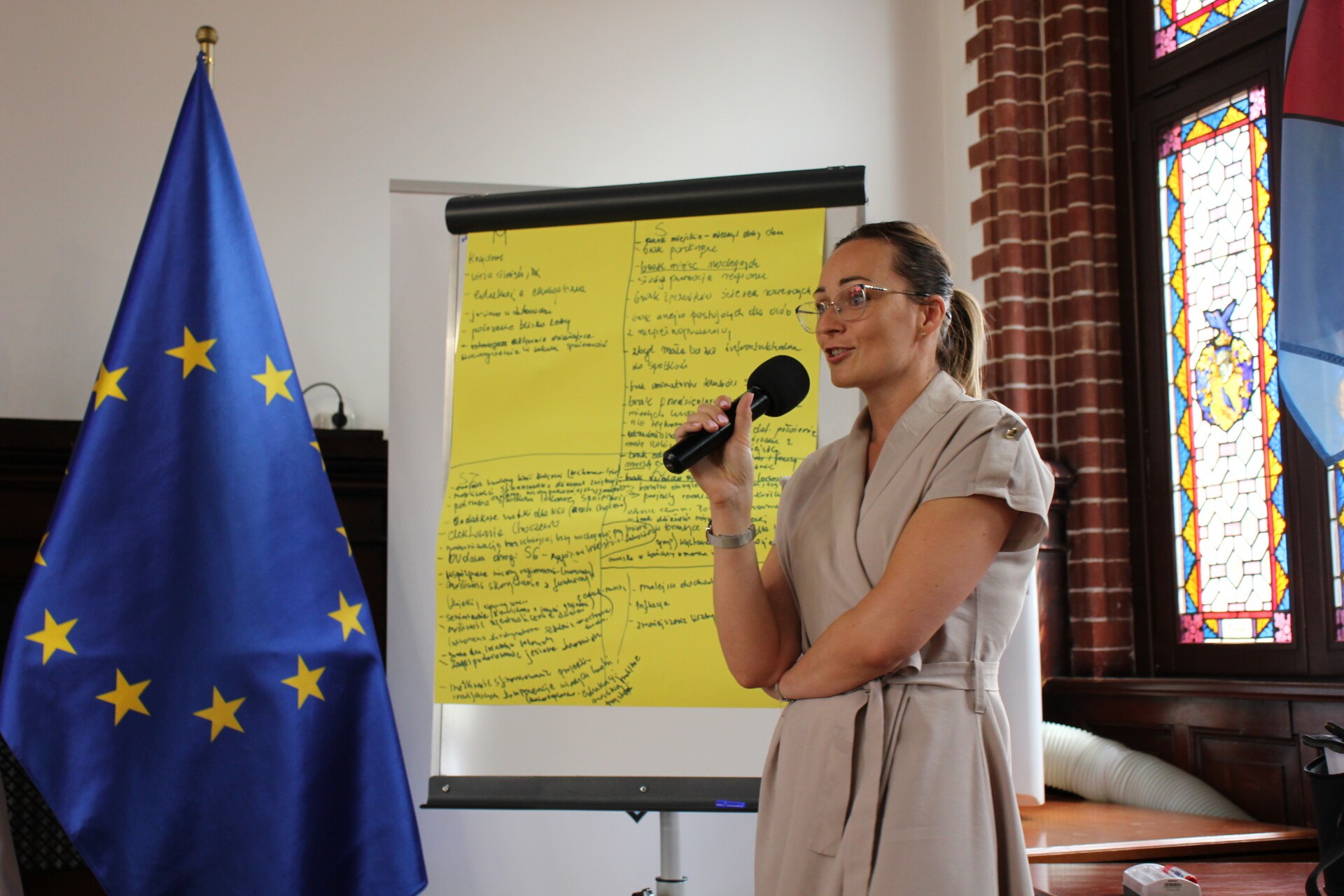 Uczestnicy spotkania reprezentujący samorządu, przedsiębiorców i organizacji pozarządowych podczas warsztatów wykonali analizę SWOT miasta Lęborka i okolicznych terenów oraz poznali zasady funkcjonowania „Funduszy Europejskich dla Rybactwa” i możliwości pozyskania środków z nich na własne działania.