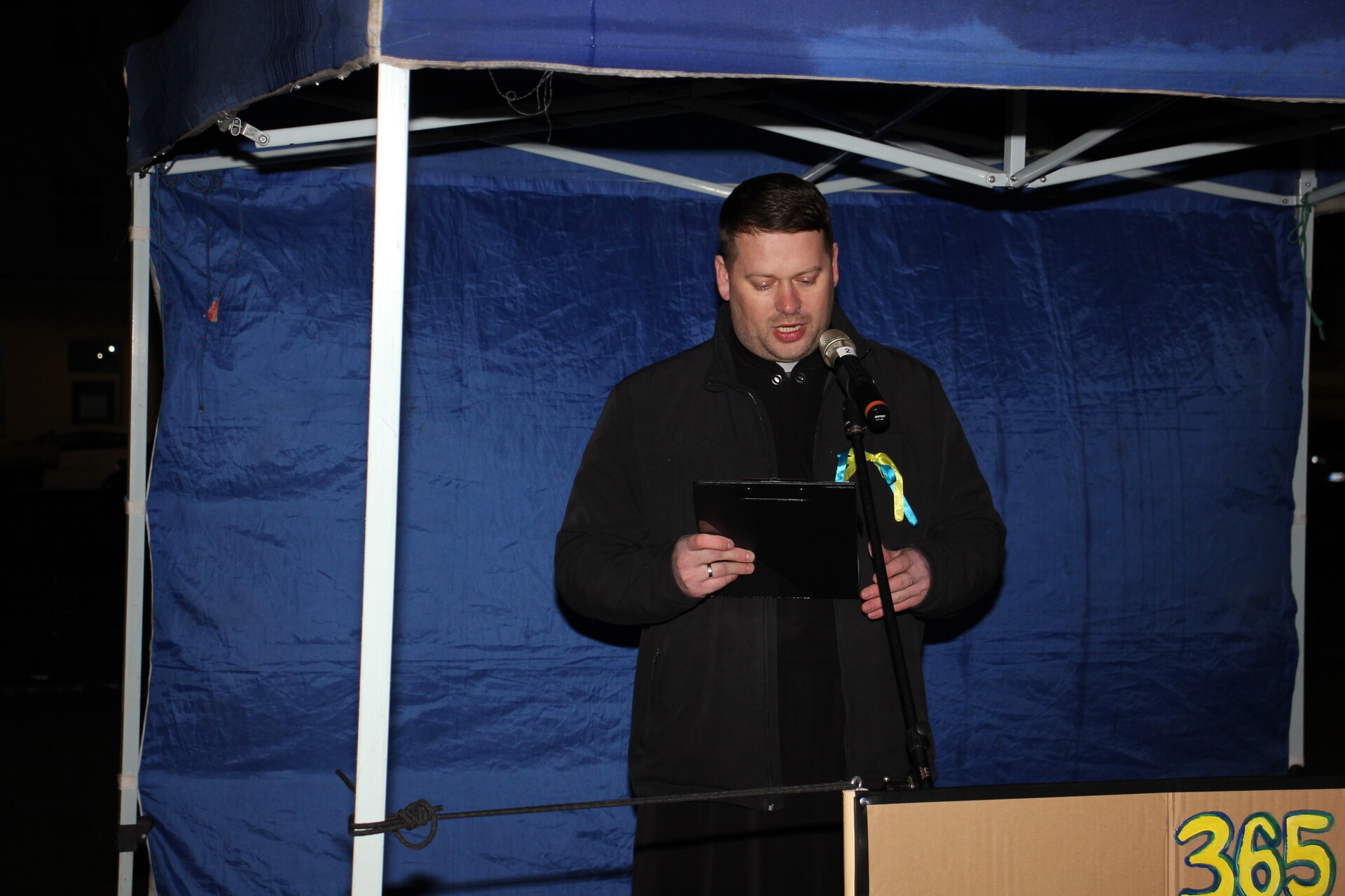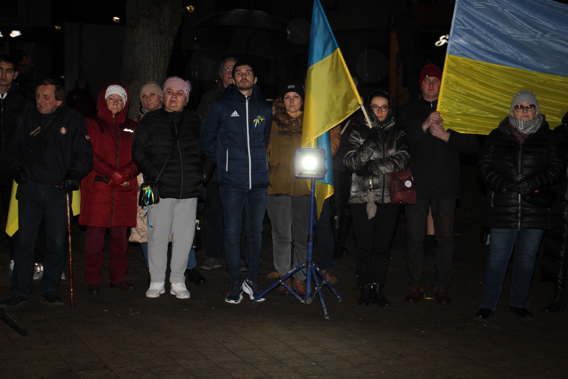 Zebrani wysłuchali hymnów Polski i Ukrainy oraz znanych pieśni związanych z Ukrainą. Wśród przemawiających podczas wiecu osób znalazł się burmistrz Lęborka Witold Namyślak, senator RP Kazimierza Kleina, liderka Związku Ukraińców w Polsce Koła miejskiego w Lęborku Renata Romanko oraz proboszcz Parafii Grekokatolickiej pw. Św. Dymitra w Lęborku Olech Hrytsiv.