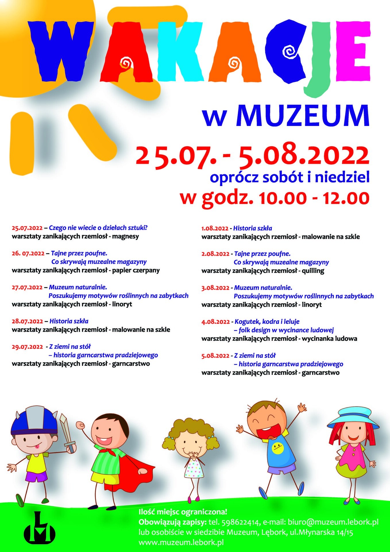 Na czas wakacji Muzeum w Lęborku przygotowało zajęcia dla najmłodszych, tzw. Wakacje w muzeum, które odbywać się będą w dniach od 25 lipca do 5 sierpnia w godzinach 10.00 – 12.00 (oprócz sobót i niedziel).