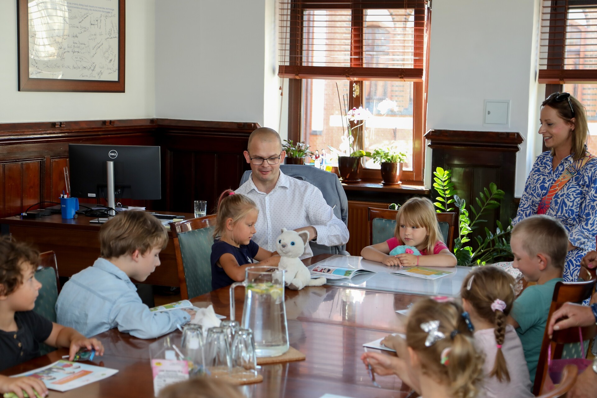 Dzisiaj rano, 15 lipca, Burmistrz Jarosław Litwin spotkał się w swoim gabinecie z grupą dzieci z Przedszkola Baśniowego w Lęborku, które odwiedziły Urząd Miejski. Przedszkolaki miały okazję zobaczyć miejsce, gdzie podejmowane są kluczowe decyzje dotyczące ich miasta.