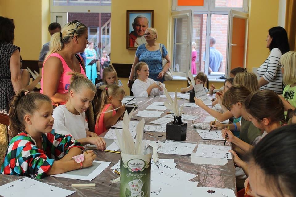 W tym samym czasie w Auli Jana Pawła II przy Sanktuarium św. Jakuba Ap. przeprowadzone zostały cieszące się jak zwykle dużym powodzeniem warsztaty piśmiennictwa, pisania gęsim piórem i pieczętowania lakiem.