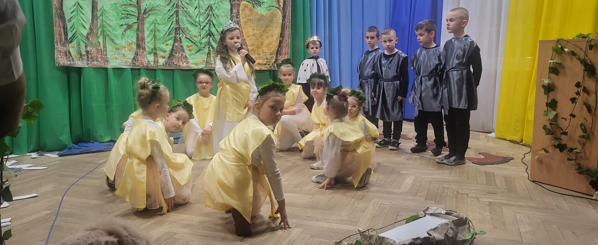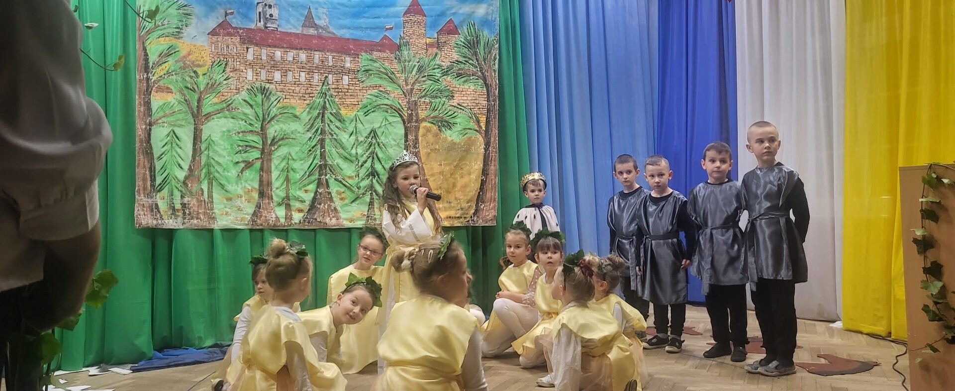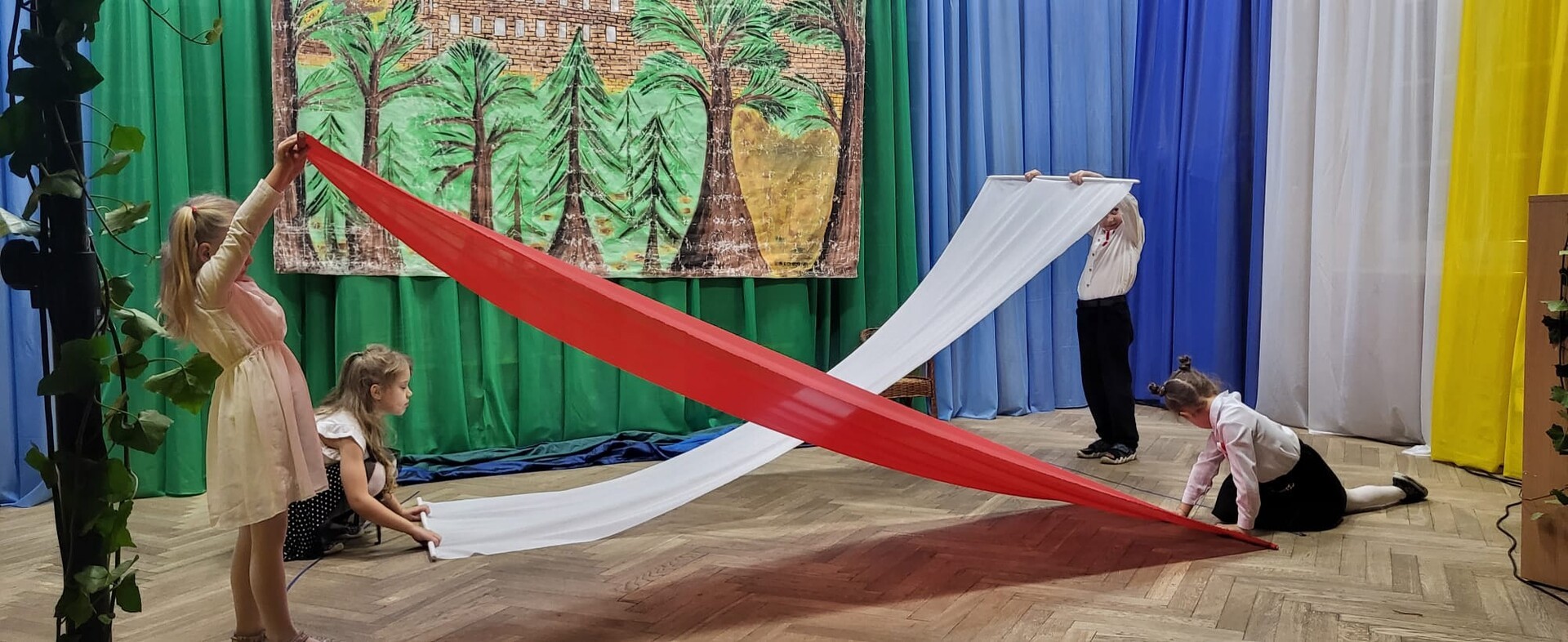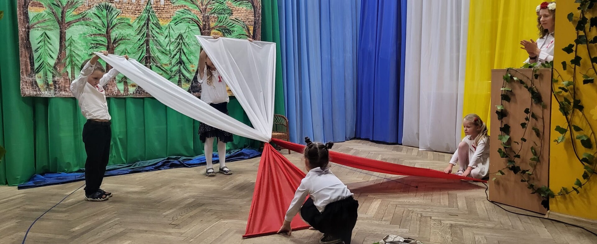 Wieczornicę rozpoczęły występy najmłodszych uczestników. Dzieci, ubrane w barwy narodowe, prezentowały swoje umiejętności artystyczne, pełne radości i entuzjazmu. Następnie głos zabrali nauczyciele i pracownicy przedszkola, którzy zaprezentowali nie tylko swoje muzyczne talenty, ale także zaangażowanie w edukację patriotyczną najmłodszych. Wspólny śpiew nauczycieli i personelu przedszkola wypełnił salę radosnym dźwiękiem.