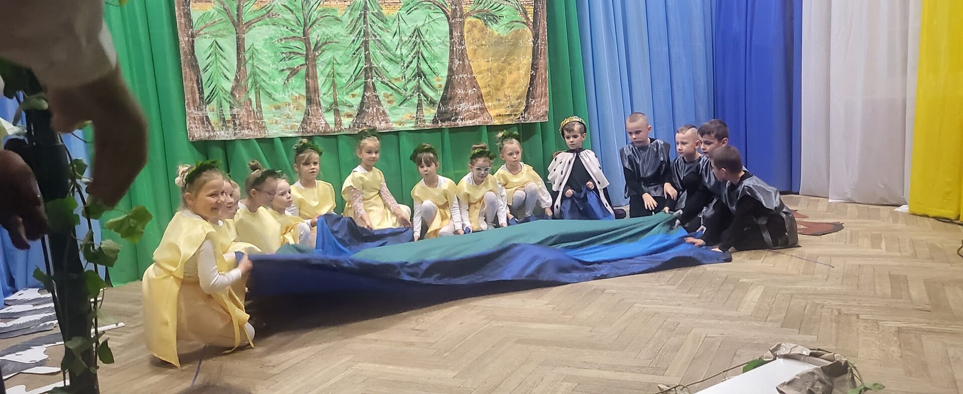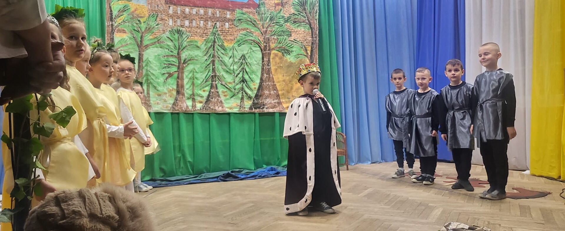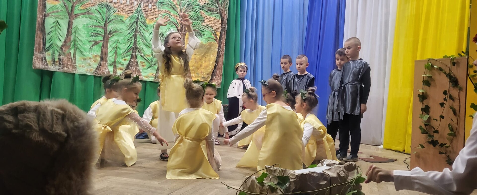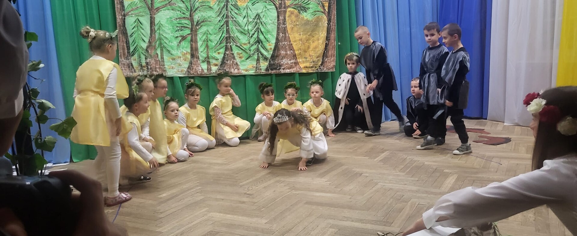 Wieczornicę rozpoczęły występy najmłodszych uczestników. Dzieci, ubrane w barwy narodowe, prezentowały swoje umiejętności artystyczne, pełne radości i entuzjazmu. Następnie głos zabrali nauczyciele i pracownicy przedszkola, którzy zaprezentowali nie tylko swoje muzyczne talenty, ale także zaangażowanie w edukację patriotyczną najmłodszych. Wspólny śpiew nauczycieli i personelu przedszkola wypełnił salę radosnym dźwiękiem.