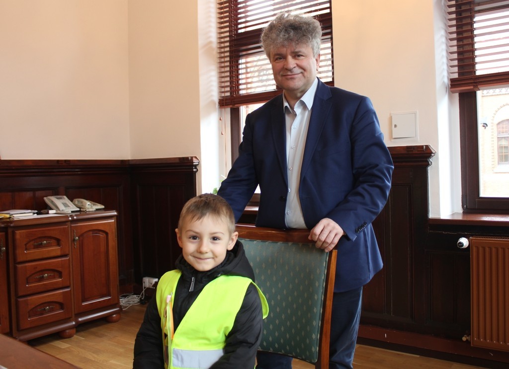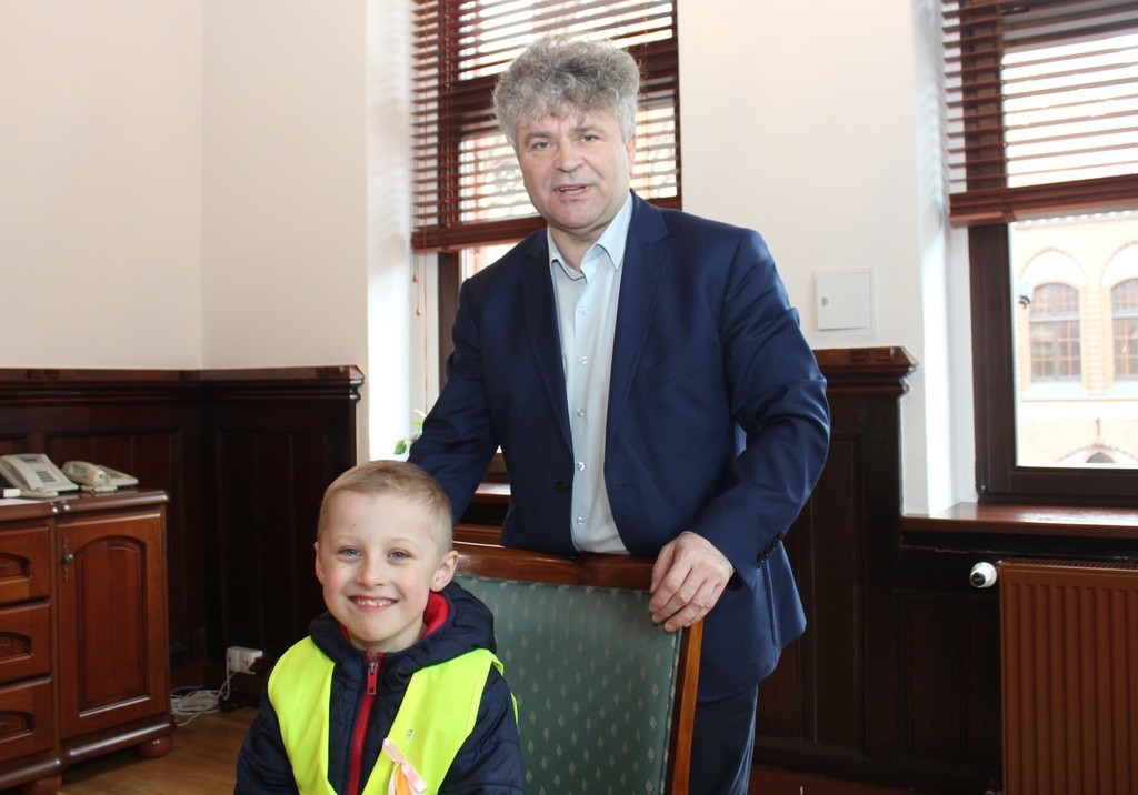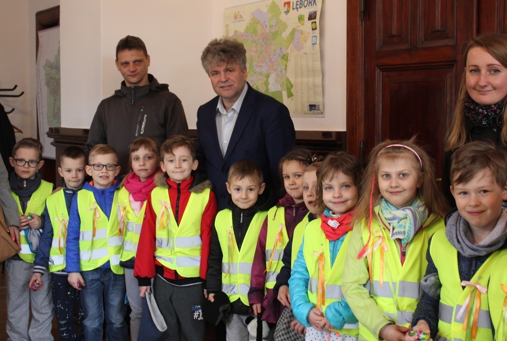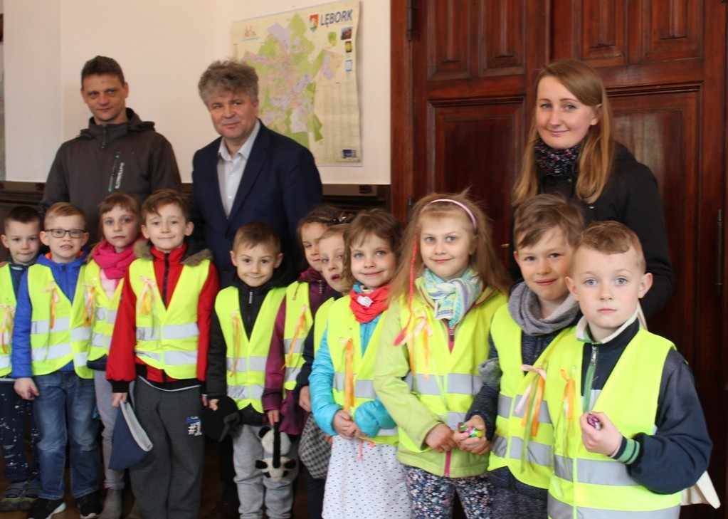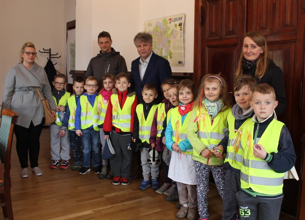 Ratusz odwiedziła dziś grupa dzieci z Przedszkola Nr 5 w Lęborku. Przedszkolaków ugościł Burmistrz Miasta Witold Namyślak. Poczęstował małych gości słodkimi zajączkami i złożył im życzenia. Dzieci przyniosły własnoręcznie wykonane świąteczne życzenia oraz zaprosiły Burmistrza na Międzyprzedszkolny Konkurs Ekologiczny „Dzień Ziemi” organizowany 20 kwietnia br. w Gimnazjum nr 2.
