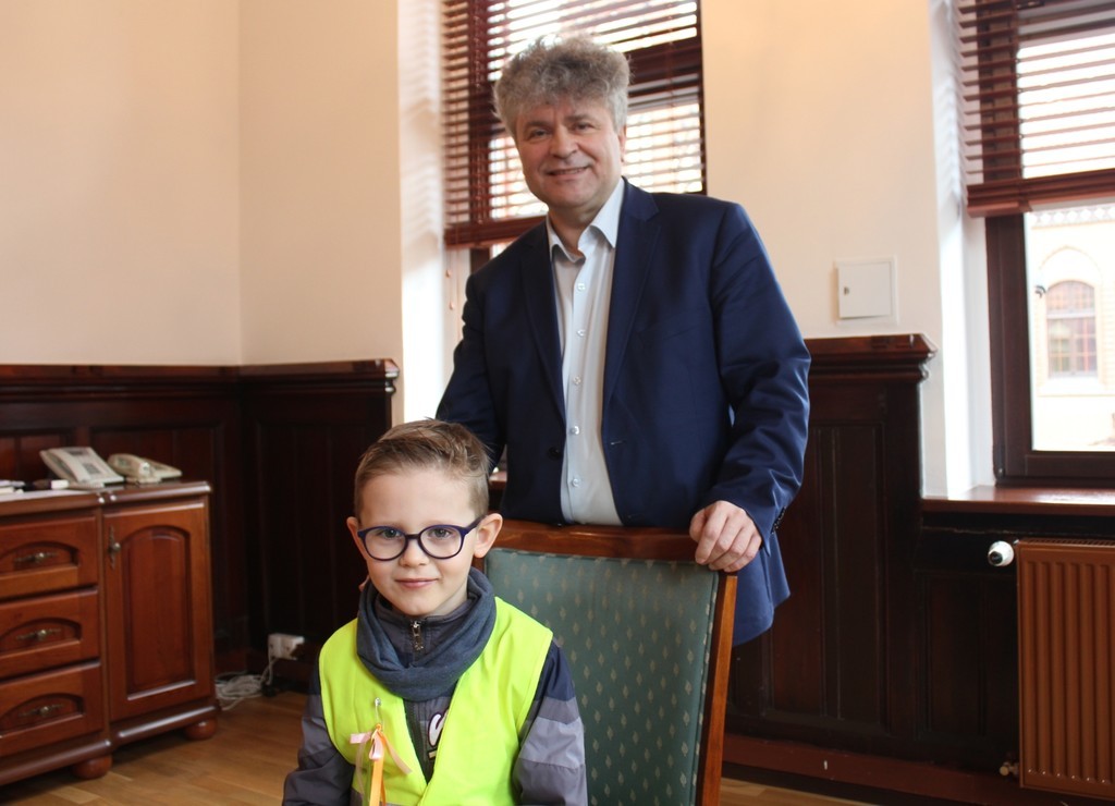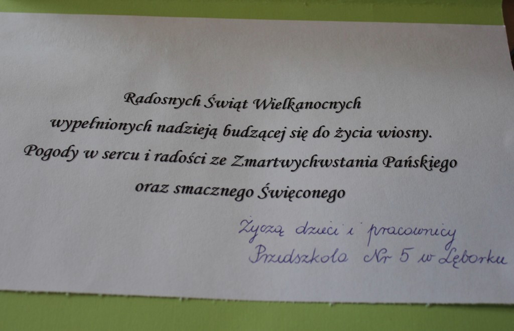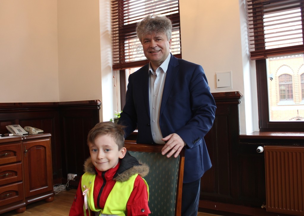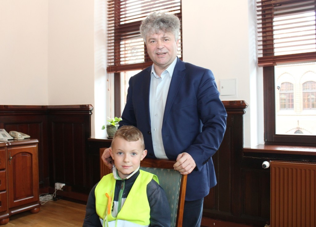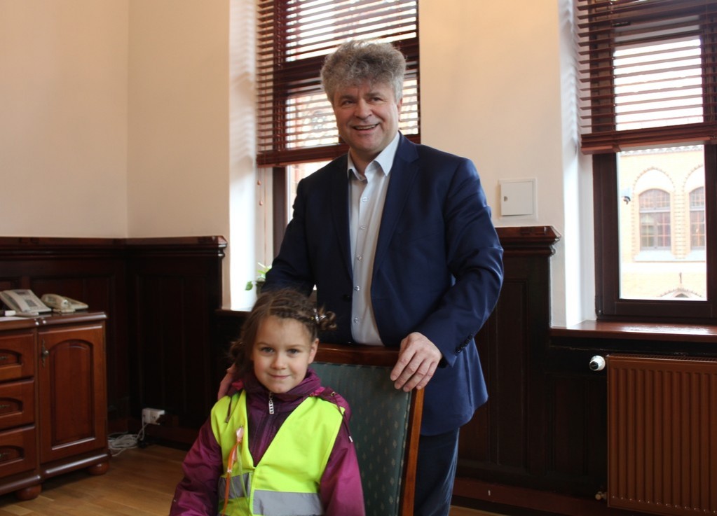 Ratusz odwiedziła dziś grupa dzieci z Przedszkola Nr 5 w Lęborku. Przedszkolaków ugościł Burmistrz Miasta Witold Namyślak. Poczęstował małych gości słodkimi zajączkami i złożył im życzenia. Dzieci przyniosły własnoręcznie wykonane świąteczne życzenia oraz zaprosiły Burmistrza na Międzyprzedszkolny Konkurs Ekologiczny „Dzień Ziemi” organizowany 20 kwietnia br. w Gimnazjum nr 2.