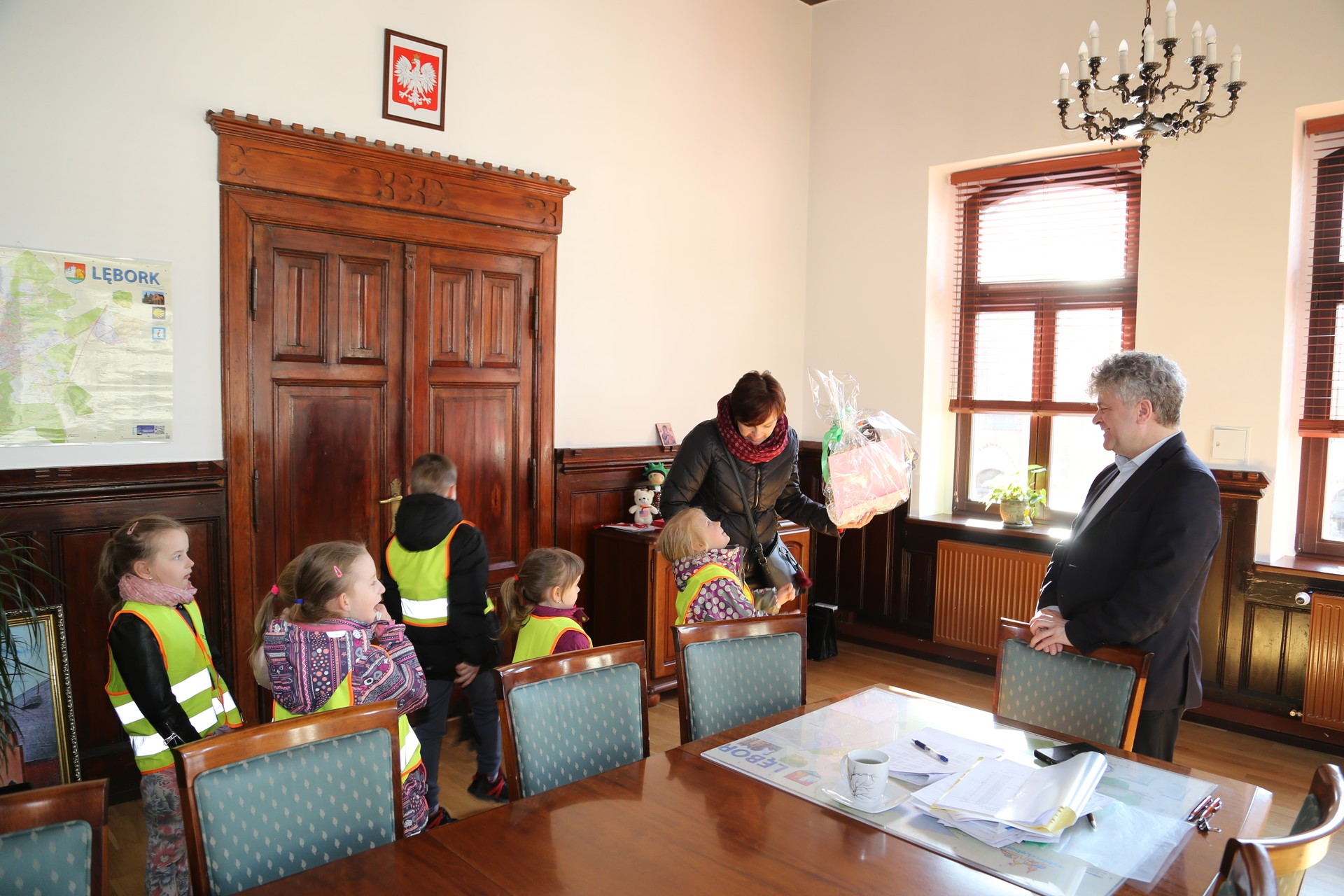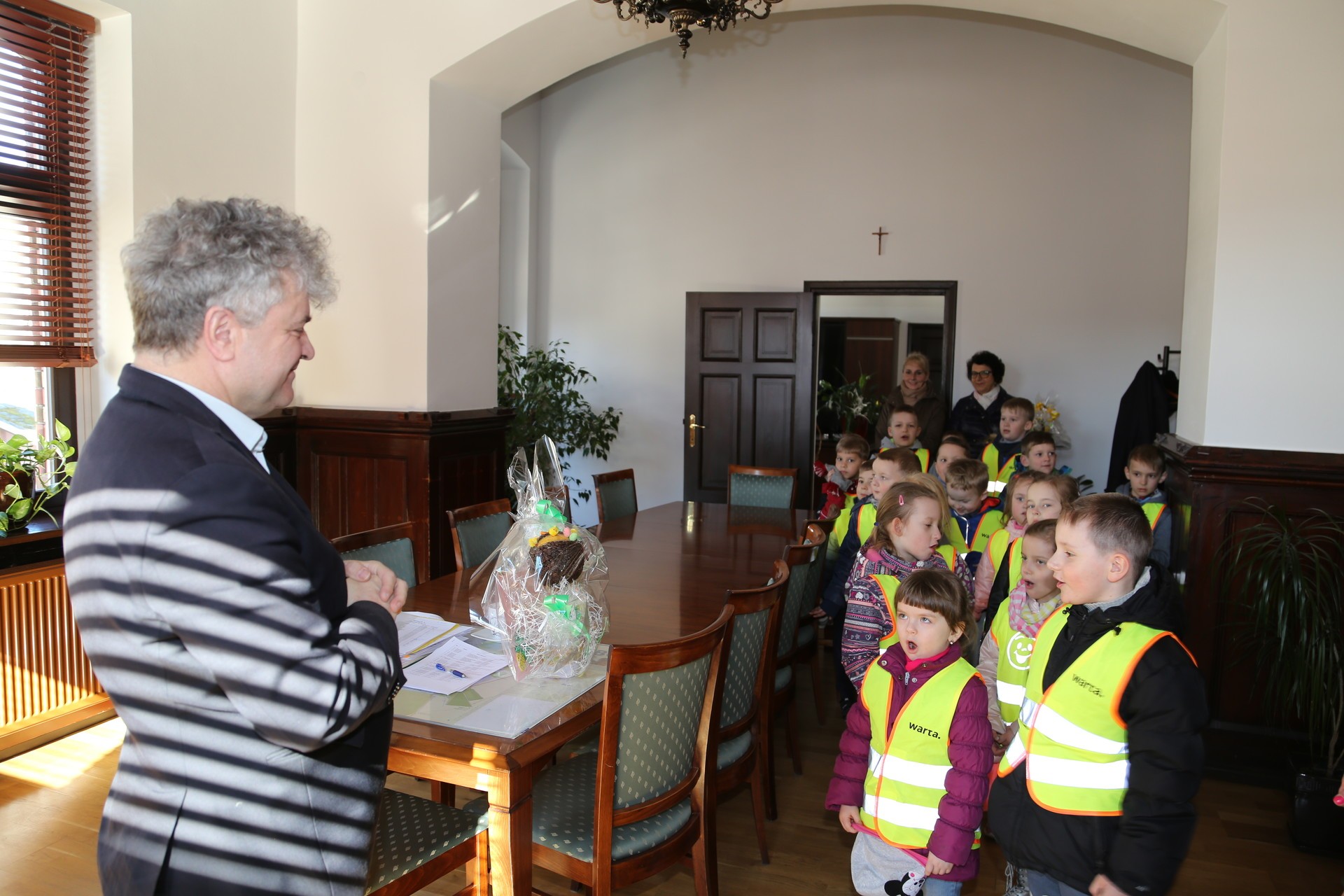 Z piosenkami i wierszykami odwiedziły wczoraj ratusz dzieci z Przedszkola nr 2. Miłych gości przyjął w swoim gabinecie Burmistrz Witold Namyślak. Przedszkolaki złożyły wielkanocne życzenia, a po nich zostały obdarowane słodkościami.