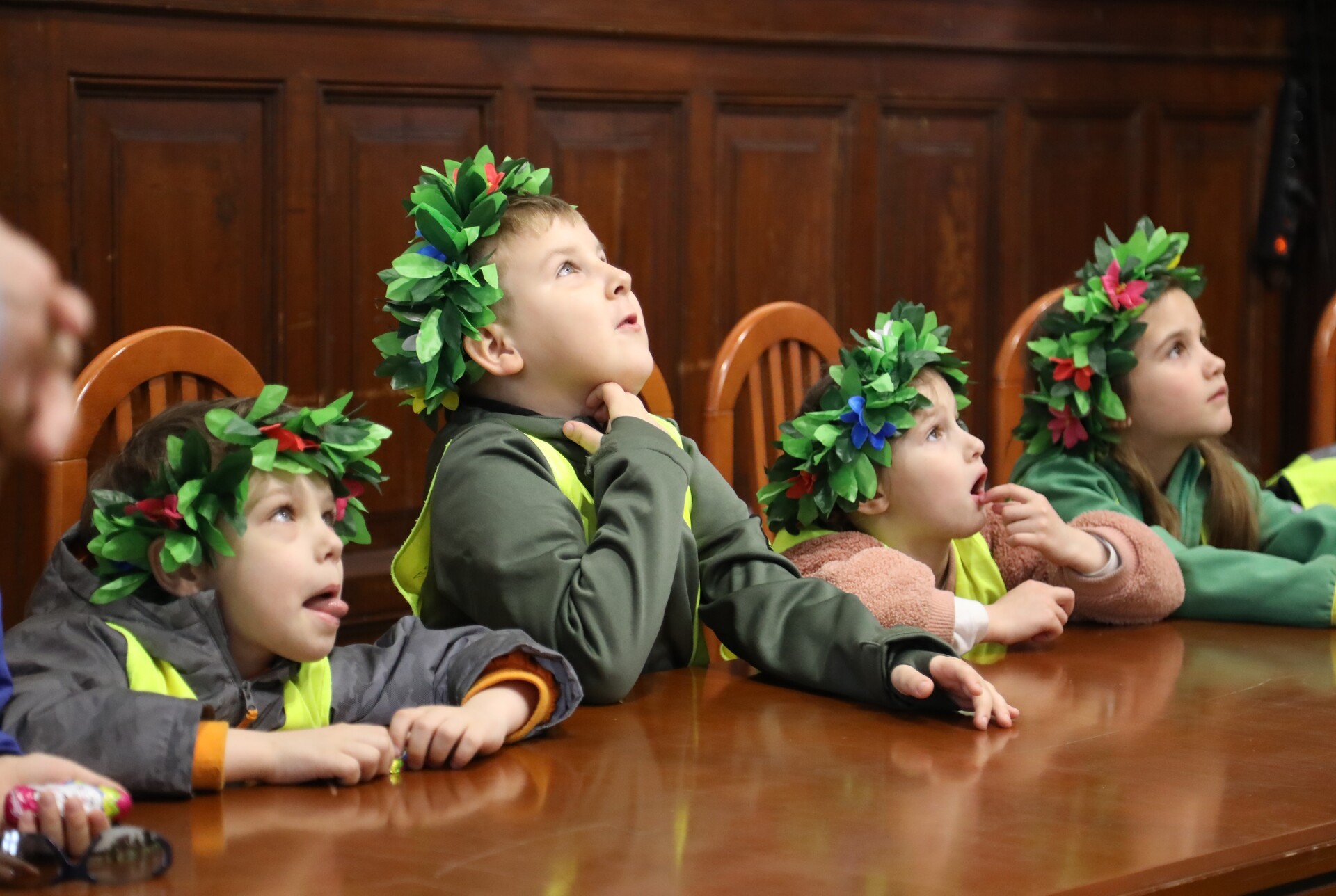 Maluchy z wielkim zainteresowaniem zwiedziły najciekawsze zakątki ratusza – Salę Rajców, gabinet burmistrza, balkon z widokiem na miasto oraz skarbiec. Dzieci chętnie zadawały pytania i dzieliły się swoją wiedzą o Lęborku, która naprawdę zrobiła wrażenie na gospodarzach. Podczas wizyty nie zabrakło także muzycznych akcentów – przedszkolaki zaśpiewały wiosenne piosenki, wnosząc mnóstwo radości i uśmiechu do urzędowych wnętrz. Na zakończenie spotkania burmistrz poczęstował dzieci słodkościami.