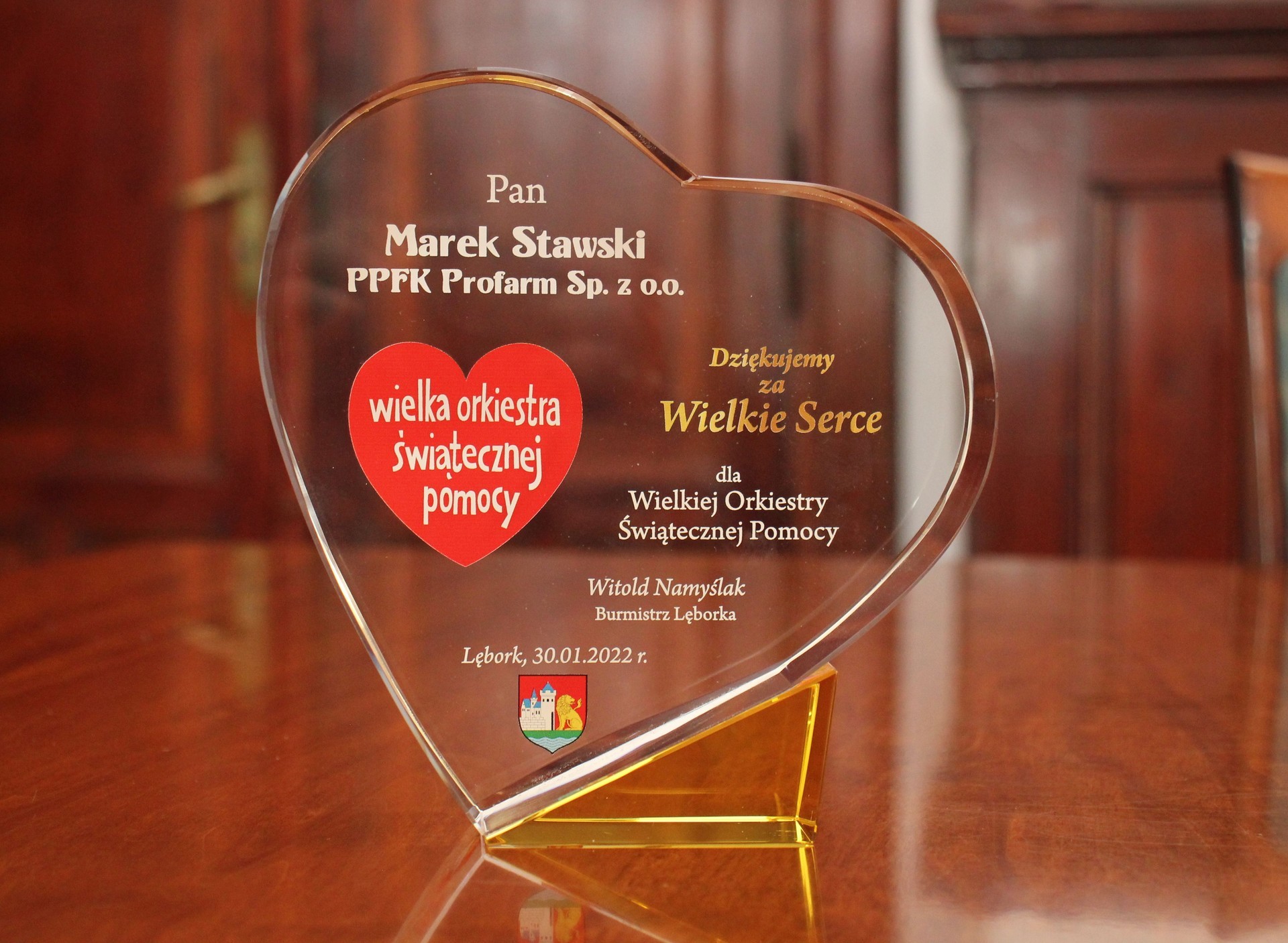 Statuetki w kształcie serca mocno zaangażowanym w działalność społeczną przedsiębiorcom wręczył burmistrz Witold Namyślak. Spotkanie było okazją do wspomnień wielu lęborskich finałów Orkiestry, w których organizację zaangażowanych było co roku wiele instytucji, organizacji, firm i osób.