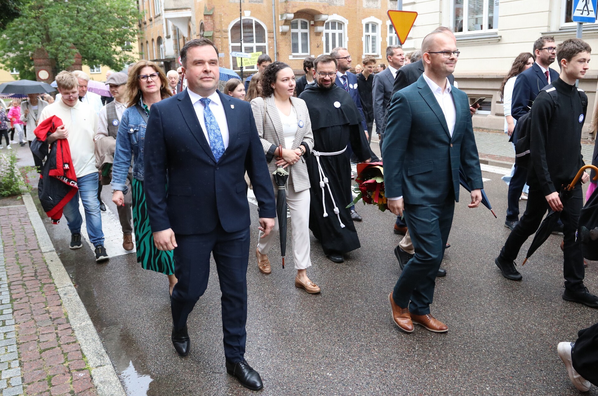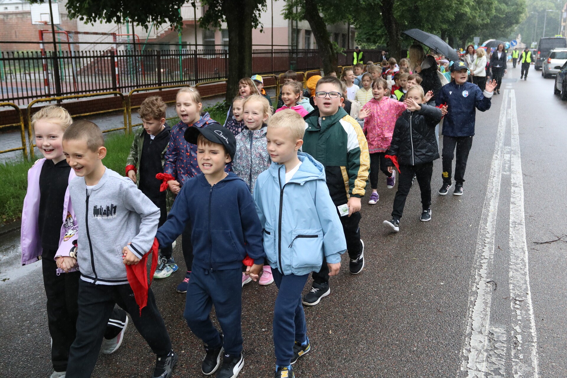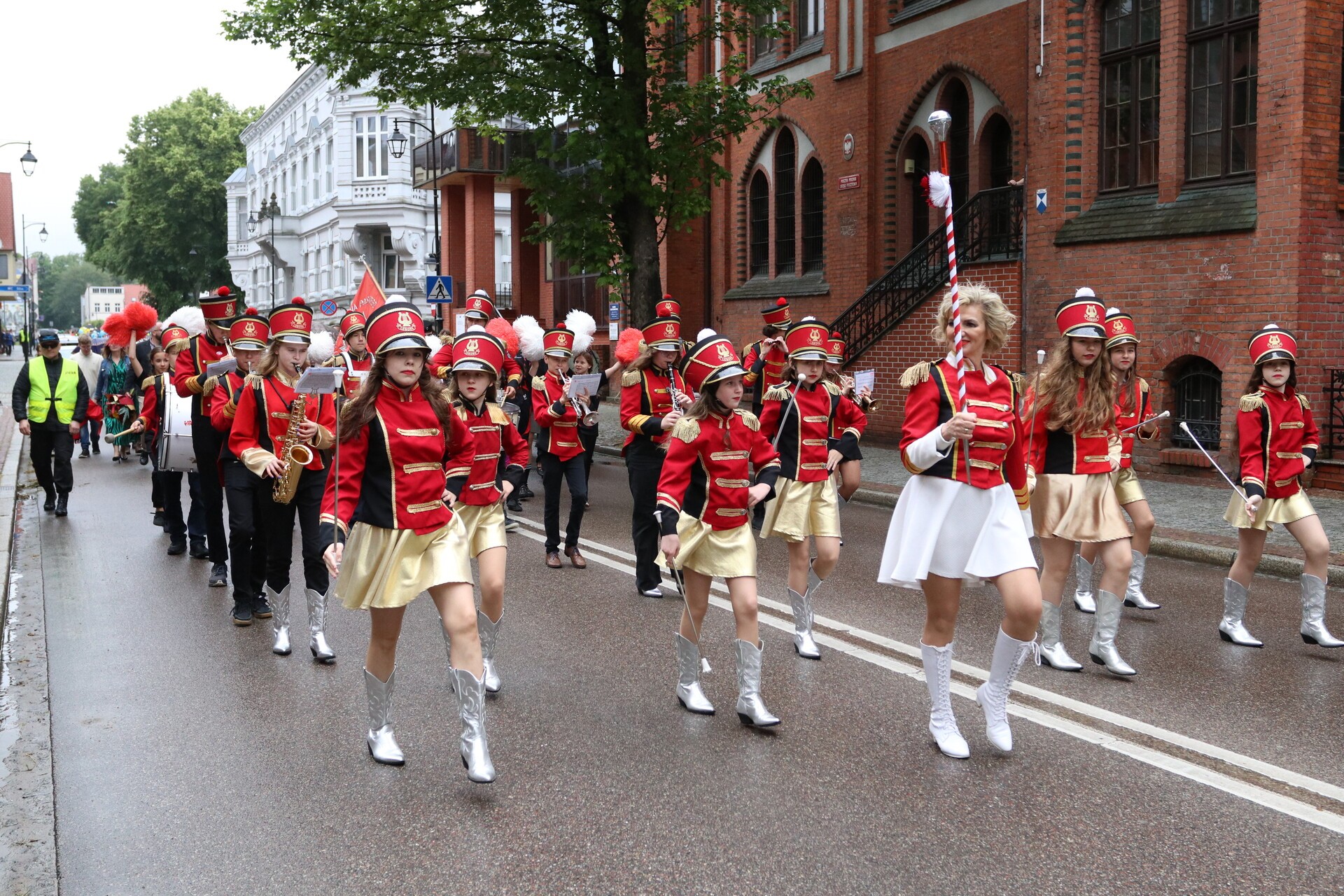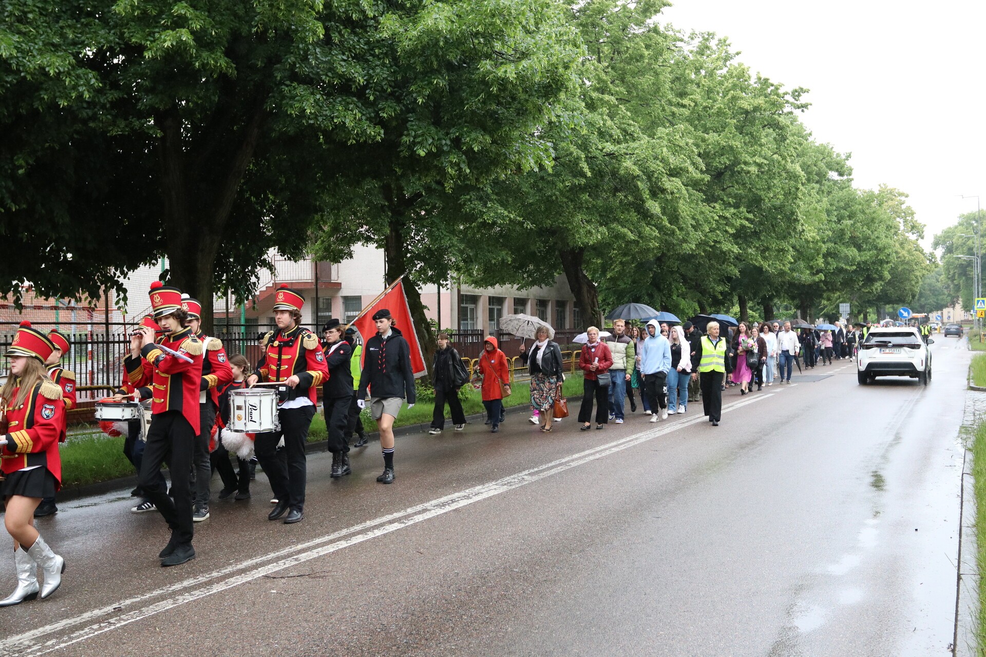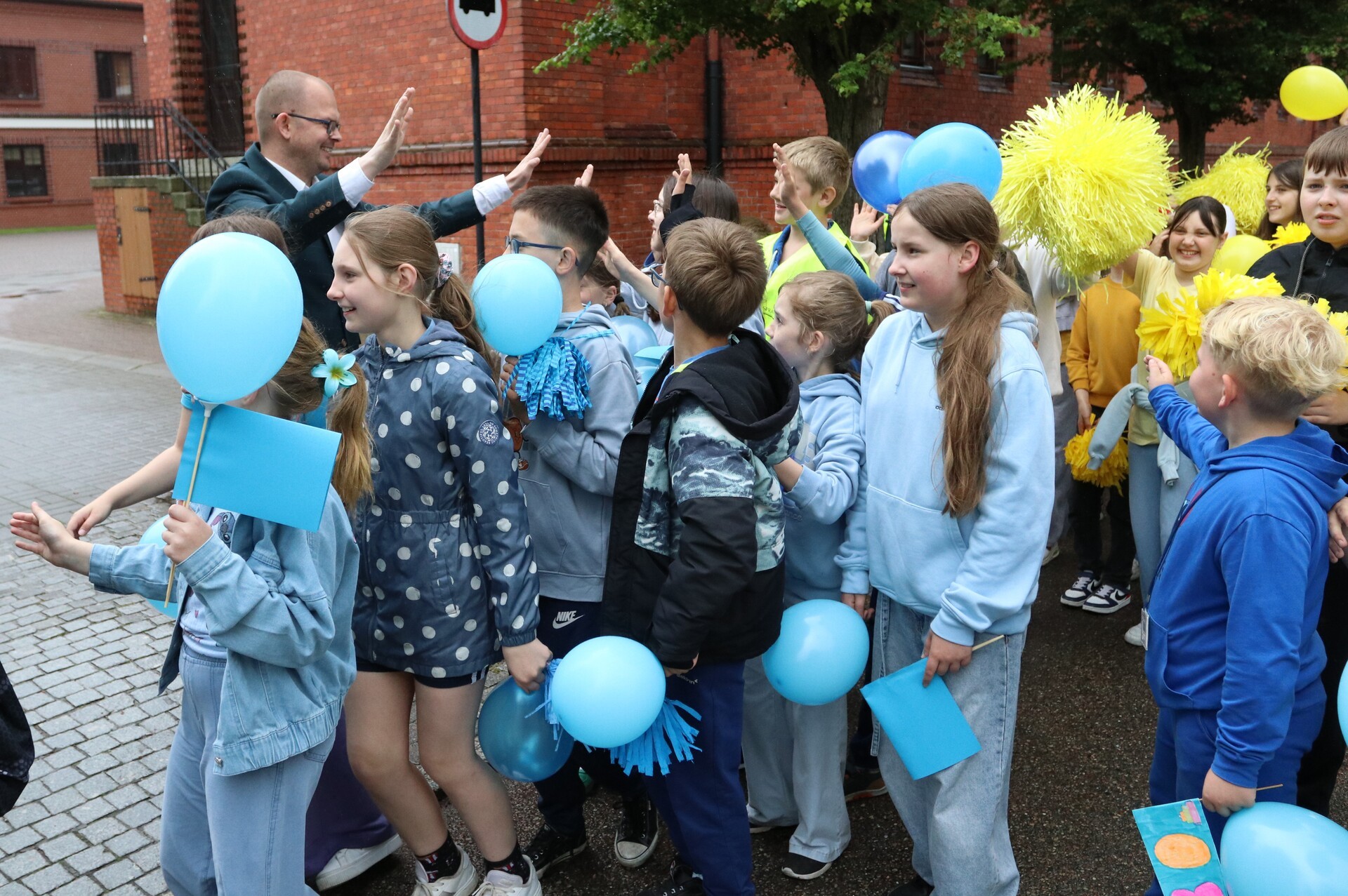 Jubileuszowe obchody rozpoczął barwny i głośny, mimo deszczowej aury, przemarsz uczniów, nauczycieli, rodziców oraz zaproszonych gości ulicami centrum Lęborka. Przy ratuszu do świętujących dołączyli burmistrz miasta Jarosław Litwin, zastępca burmistrza Krzysztof Król i przewodniczący Rady Miejskiej Radosław Zimnowoda. Kolorowe transparenty i dźwięki Orkiestry Dętej „Ziemia Lęborska” przyciągnęły uwagę przechodniów, tworząc niezwykłą atmosferę radości i wspólnoty.