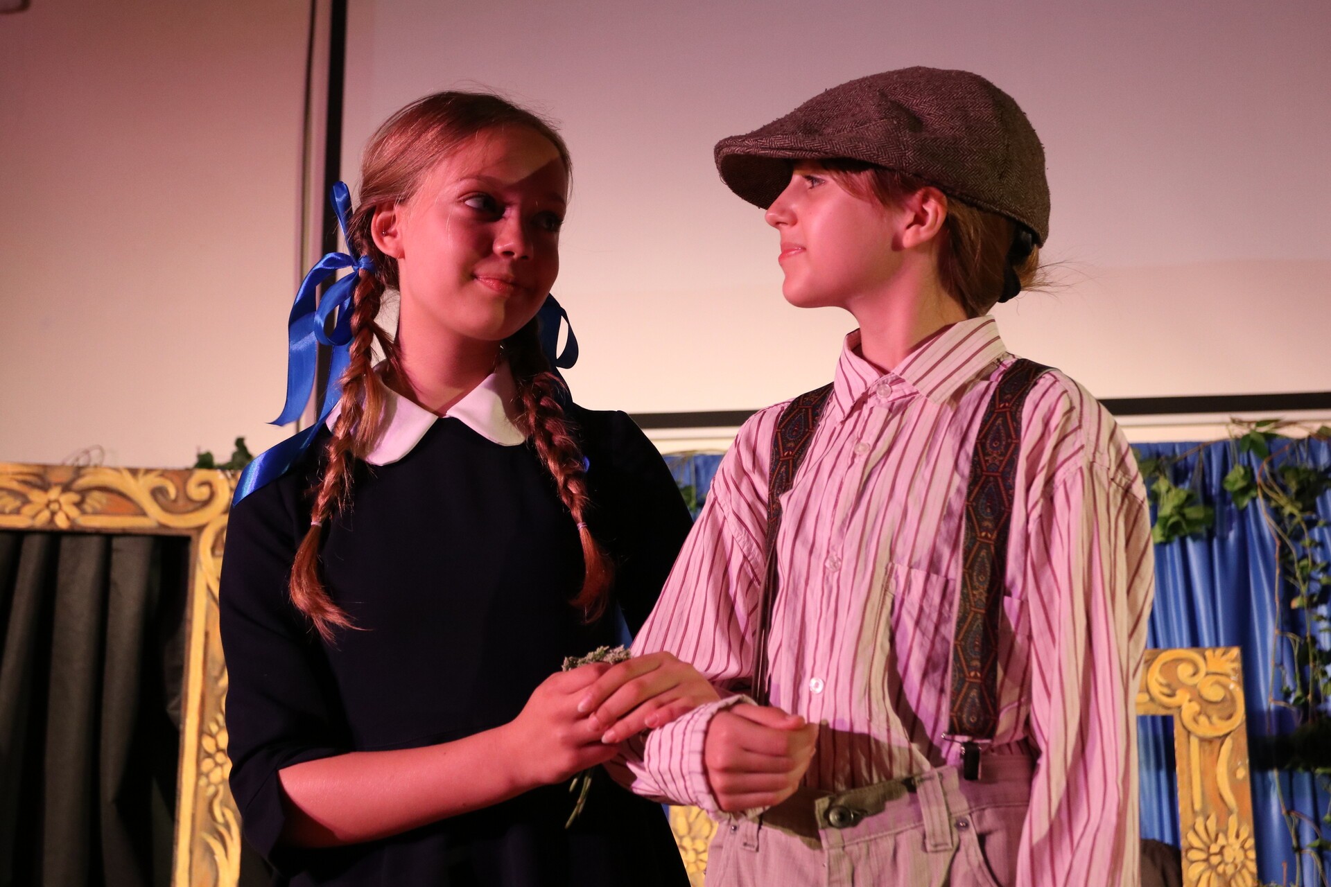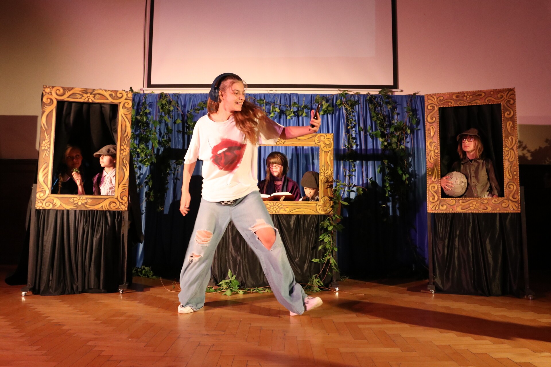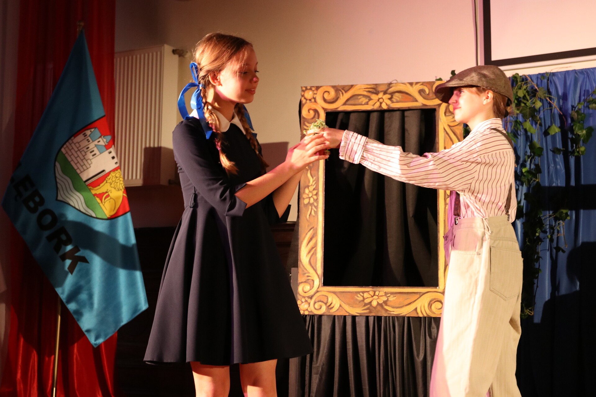 Dalsza część uroczystości odbyła się już w szkolnej auli. Uczniowie zaprezentowali przedstawienie nawiązujące do historii powstania szkoły aż po współczesność, pokazując talenty artystyczne i zaangażowanie.