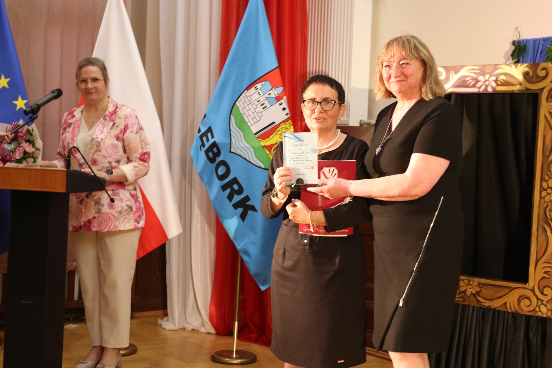 Życzenia i gratulacje przekazali pracownicy Kuratorium Oświaty w Gdańsku z Delegatury w Słupsku – dyrektor Romuald Bieniasz - Krzywiec, starsza wizytator Ewa Mroczek – Hałas, starsza wizytator Beata Sobańska – Zając, a także przedstawiciele oświatowych związków zawodowych Halina Ługowska - Siłka (ZNP) i Aleksandra Werra (NSZZ „Solidarność”).