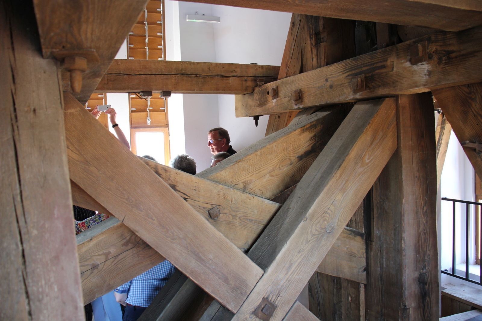 Drugi, zakończony przed kilkoma tygodniami etap obejmował przebudowę schodów wewnętrznych i poziomów wieży, renowację i przebudowę podstawy dzwonów, przebudowę mechanizmu zegarów na cztery oddzielne zsynchronizowane, restaurację istniejących organów z wykonaniem obudowy przeziernej w celu ich ekspozycji, remont zaplecza sanitarnego i salki przykościelnej w celu dostosowania na przechowalnie bagażu i szatnię dla zwiedzających ekspozycję, wykonanie instalacji elektrycznej, alarmowej ppoż, antywłamaniowej i monitoringu, tynkowanie i malowanie wnętrza wieży, wykonanie podświetlanych stołów ekspozycyjnych z gablotami oraz wykonanie 12 naściennych plansz ekspozycyjnych.