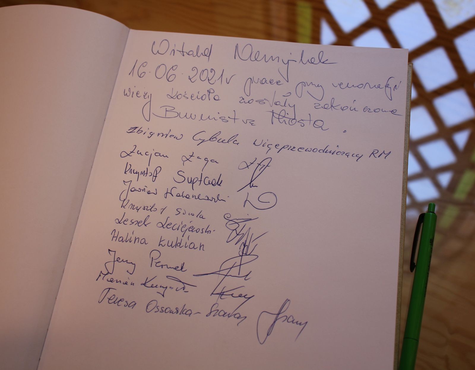 Spotkanie na szczycie wieży było okazją do obejrzenia wykonanych robót i omówienia zakresu realizowanego zgodnie przez Urząd Miejski i Parafię unijnego projektu pn. „Skarby Lęborka – ukazanie dziedzictwa kulturowego miasta przez odratowanie i wyeksponowanie elementów zabytkowego centrum”. Łączny koszt prac przy zabytkowym obiekcie wyniósł 1 mln 927 tys. zł. Dofinansowanie unijne z Regionalnego Programu Operacyjnego Województwa Pomorskiego na lata 2014-2020 wyniosło 906 tys., a wkład parafii to 1 mln zł 21 tys. zł pomniejszony o dotację z miasta w ramach wspierania remontów zabytków w wysokości 188 tys. 696 zł. Umowa na dofinansowanie zadania „Remont i udostępnienie wieży zabytkowego kościoła pw. NMP KP w Lęborku” pomiędzy Burmistrzem Miasta, a parafią została zawarta 5 lutego 2021 roku. Realizacja projektu nie była by możliwa bez znacznego zaangażowania finansowego parafii i jej parafian.