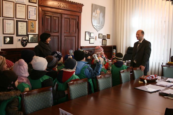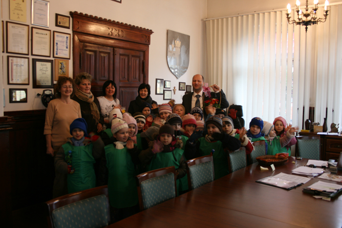 Z piosenką na ustach do ratusza miejskiego zawitała grupa sześciolatków z Przedszkola nr 6 w Lęborku. Dzieci odwiedziły Włodzimierza Klatę Burmistrza Miasta w jego gabinecie, podarowały prymulki na znak nadchodzącej wiosny i aby odpędzić ostatnie oznaki zimy zaśpiewały radosną wiosenna piosenkę.
