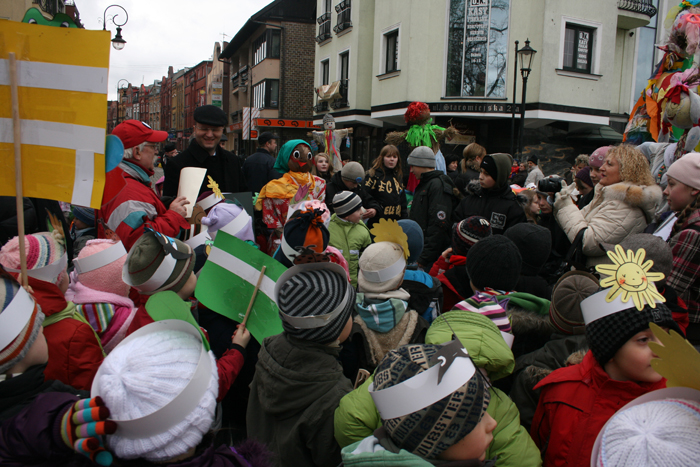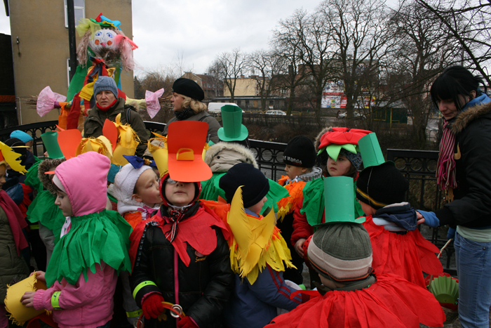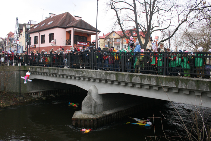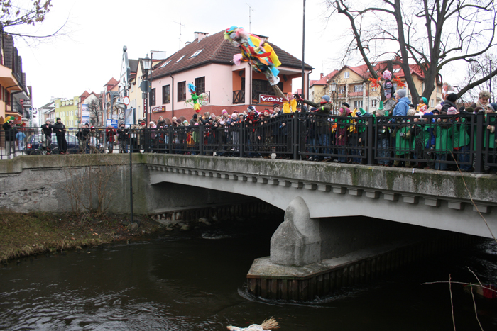 Następnie przedszkolaki udały się razem z Burmistrzem na most na ulicy Staromiejskiej gdzie nastąpiło huczne pożegnanie zimy.