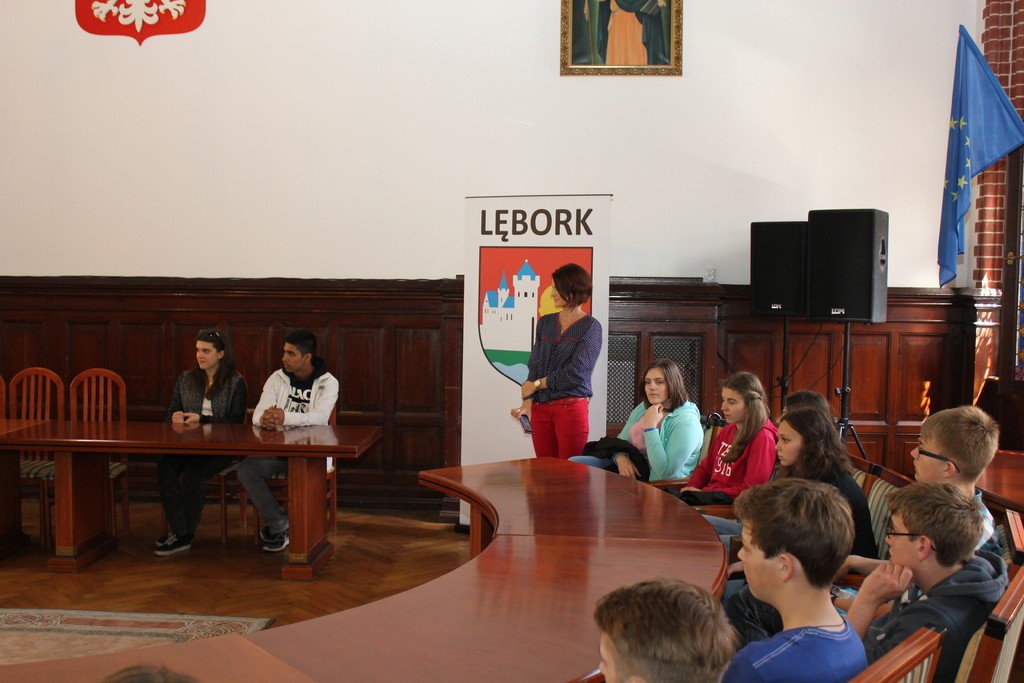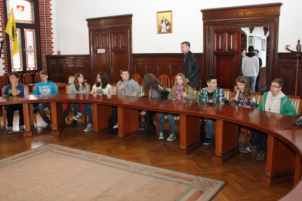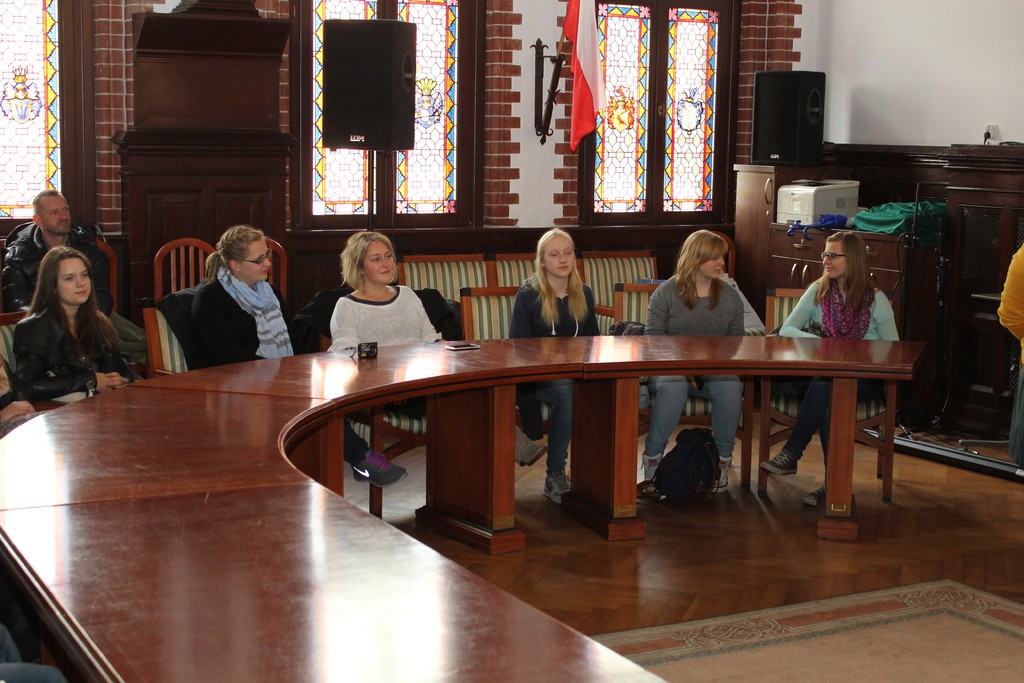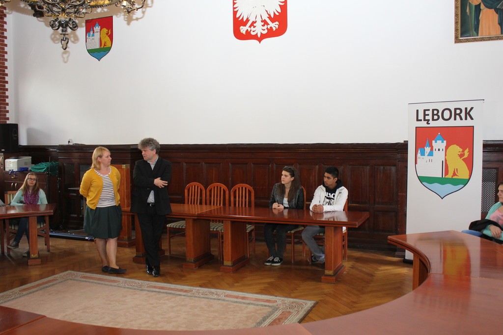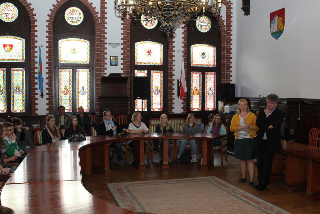 Urzędzie Miejskim uczniowie z Lauenburga i Gimnazjum nr 1 wraz z opiekunami powitani zostali przez Burmistrza Miasta, Witolda Namyślaka. Wszyscy uczestnicy wizyty otrzymali materiały informacyjne na temat naszego miasta, zwiedzili również skarbiec.