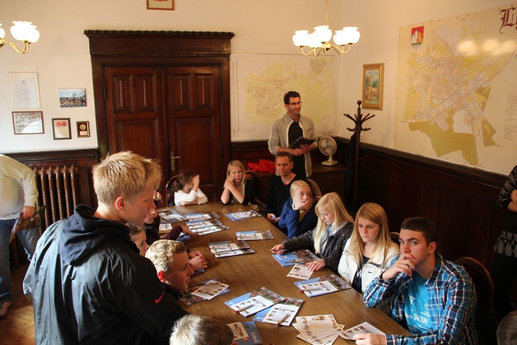 W dniu wczorajszym lęborski ratusz odwiedziła grupa 20 pływaków – młodzieży z Norwegii, wraz z opiekunami, którzy przybyli do Lęborka na zaproszenie p. Dariusza Gromulskiego, trenera pływaków UKS Jedynka Solex Lębork.
